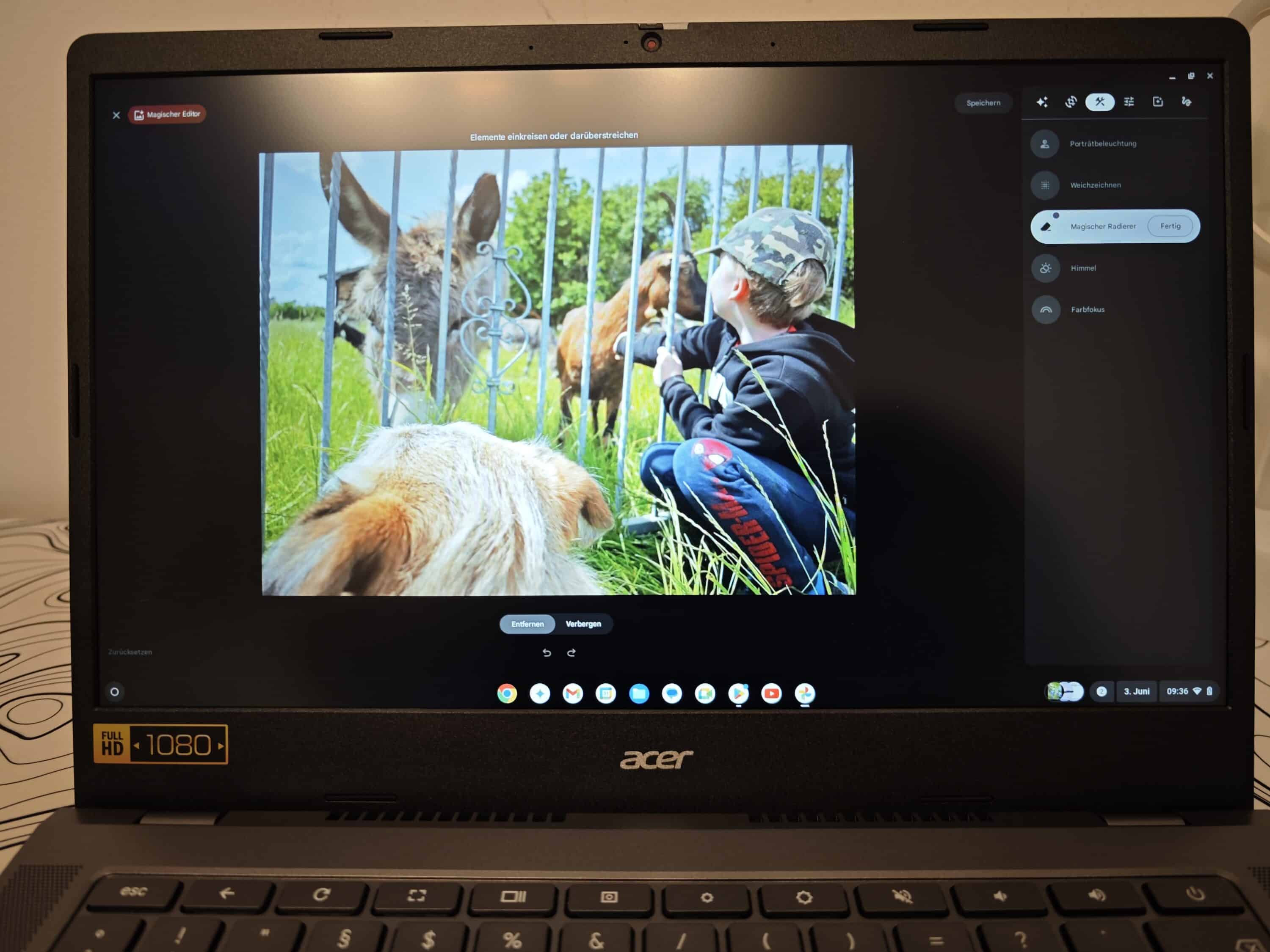 Durch die matte Oberfläche lässt sich natürlich im Inneren sehr gut mit dem Chromebook arbeiten. Vollends überzeugen konnte uns der Bildschirm allerdings nicht. Das liegt einerseits daran, dass die Farben sehr blass ausfallen und es einfach an dem gewissen Punch fehlt.