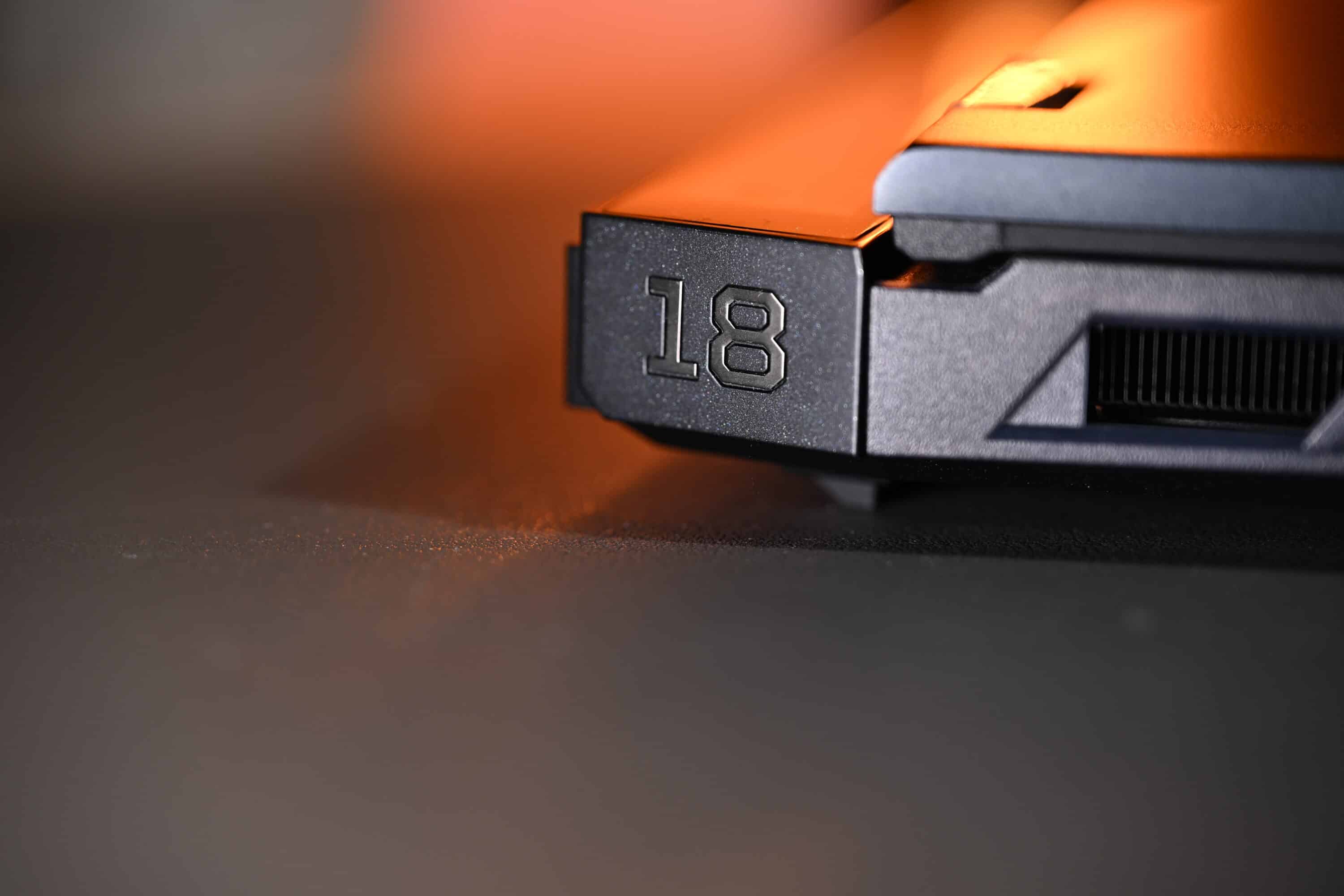 Mit einer Bildschirmdiagonale von 18,0 Zoll gehört das Helios 18 AI zu den größeren Vertretern seiner Klasse, was sich auch im Gewicht von rund 3,5 Kilogramm niederschlägt. Trotz des vergleichsweise voluminösen Chassis ist das Gehäuse für die Leistungsklasse noch überraschend schlank gehalten. Die Kühltechnik mit großem Design sitzt sichtbar am Heck des Geräts und sorgt für eine effektive Luftzirkulation, die jedoch einen gewissen Tiefgang des Laptops bedingt.