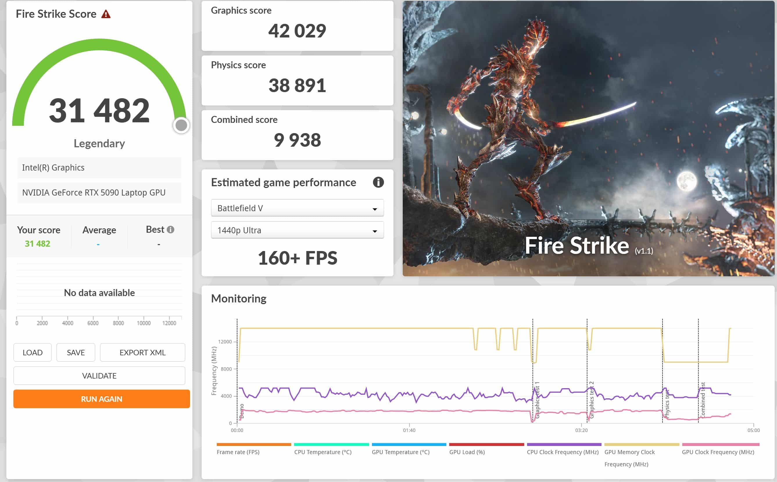 | Fire Strike Gesamt | 31.482 Pkt. |
