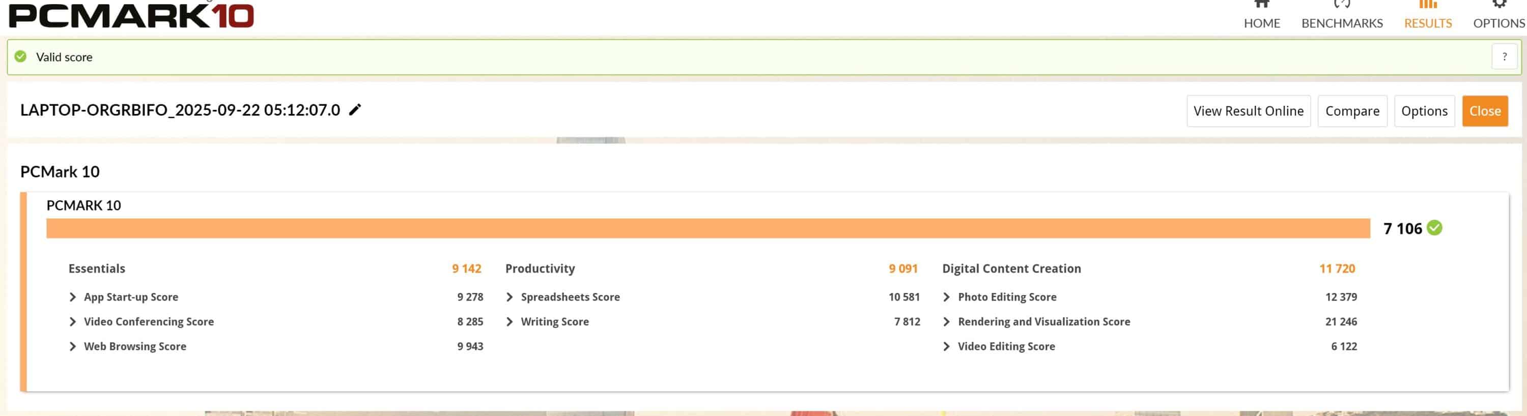 | PCMark 10 Gesamtwert | 7.106 Pkt. |