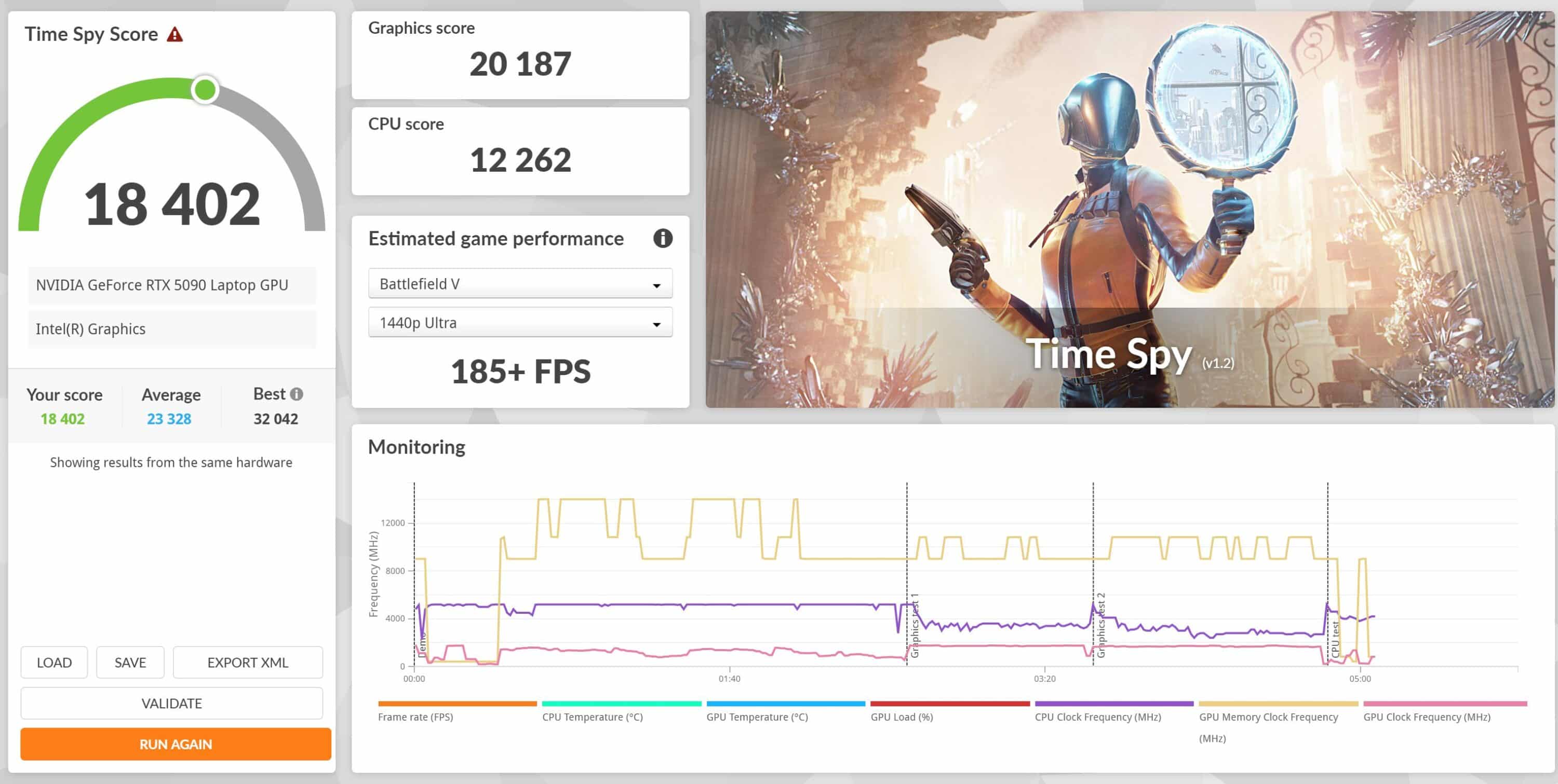 Was die Gaming- und Grafikleistung anbelangt, so rangiert das Acer Predator Helios 18 AI ebenfalls unter dem Alienware 18 Area-51 und vergleichbaren Notebooks, was an der etwas beschnittenen TDP des Notebooks liegt.