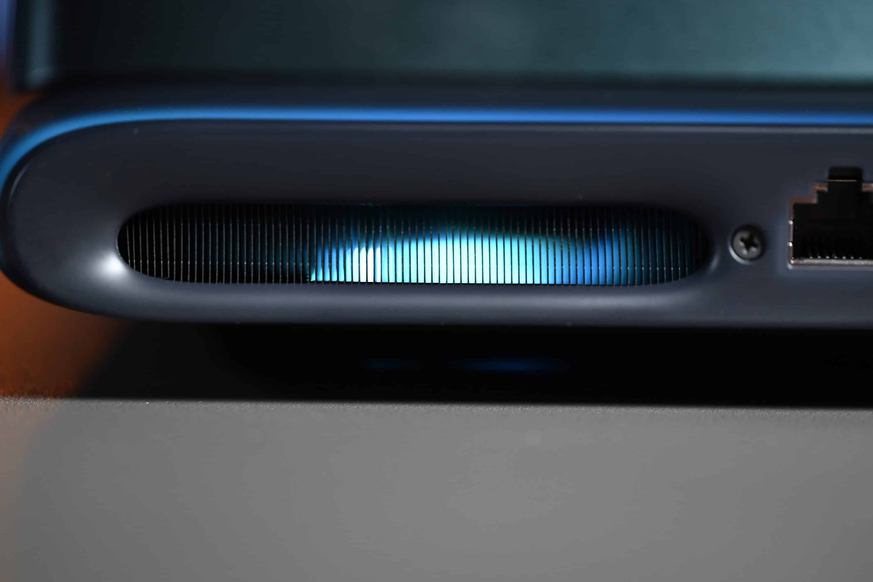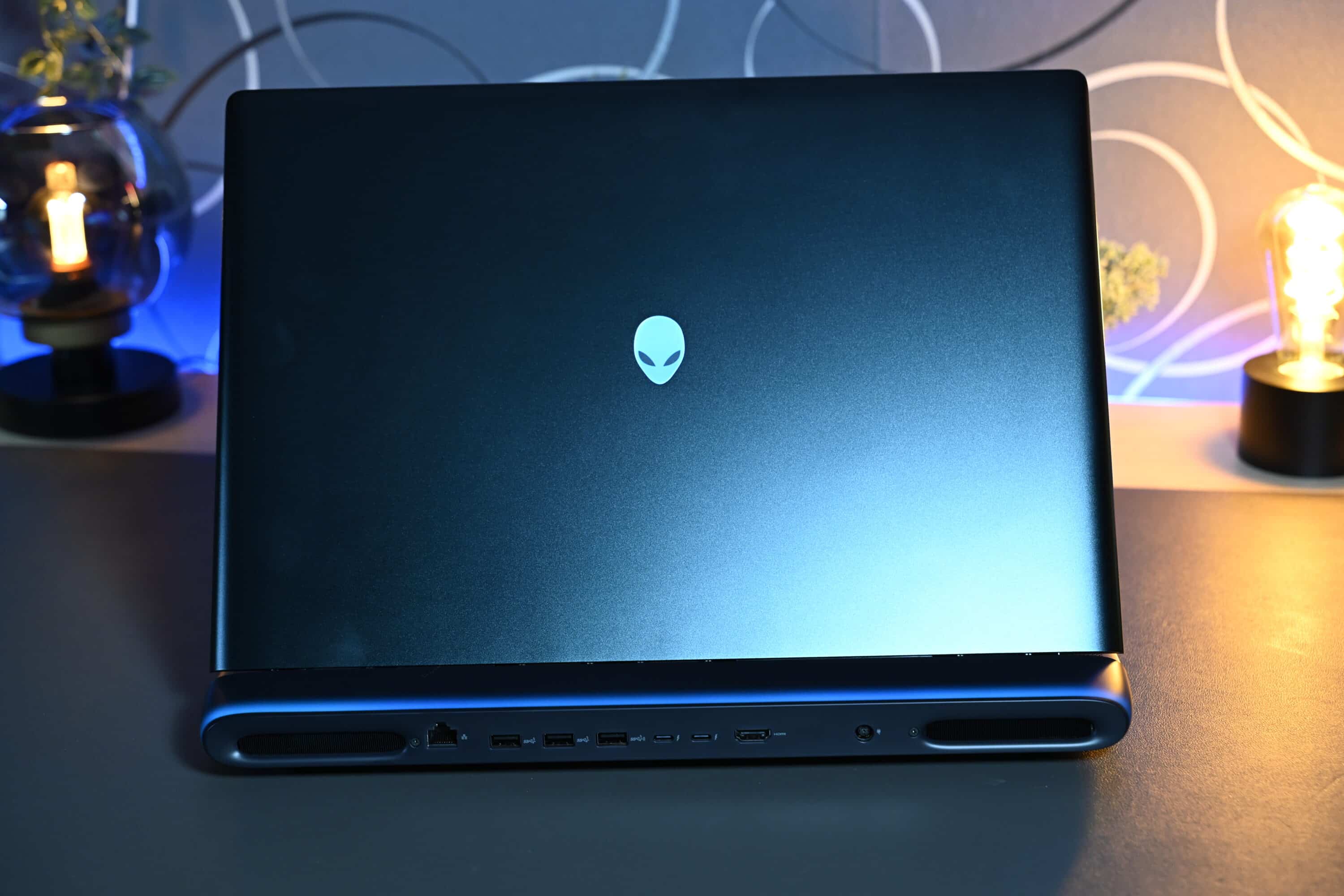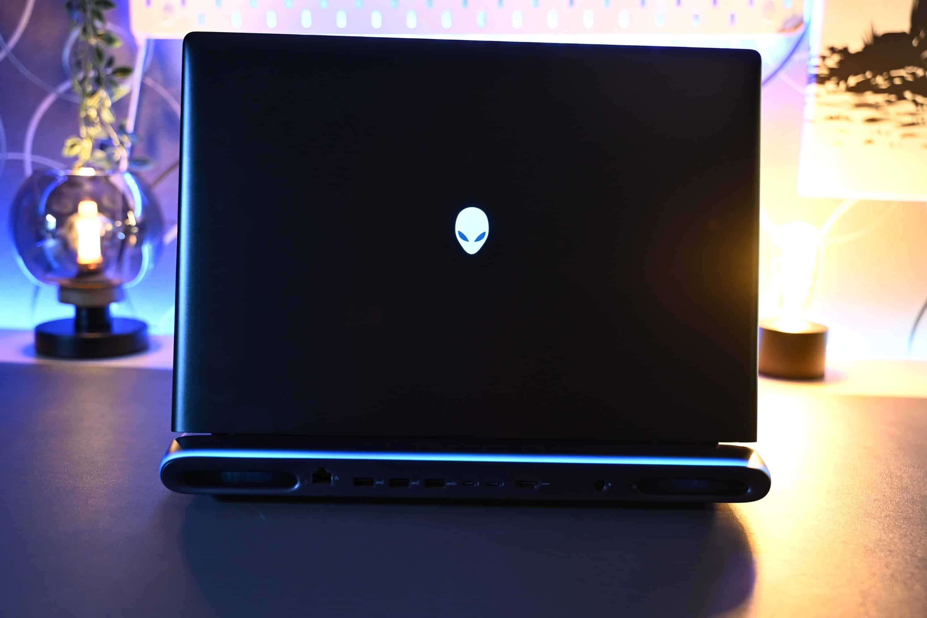 Das gilt auch für das grünlich schimmernde Gehäuse in der Farbe „Liquid Teal“, das in Verbindung mit der anpassbaren AlienFX-Beleuchtung für einen einzigartigen Look sorgt. Ja, diese von den Nordlichtern inspirierte Beleuchtung ist in der Tat ziemlich einzigartig, da diese auf die Oberflächen reflektiert wird. Das zeigt sich beispielsweise an der Rückeite und sorgt für eine stimmige Ambientbeleuchtung nach hinten.