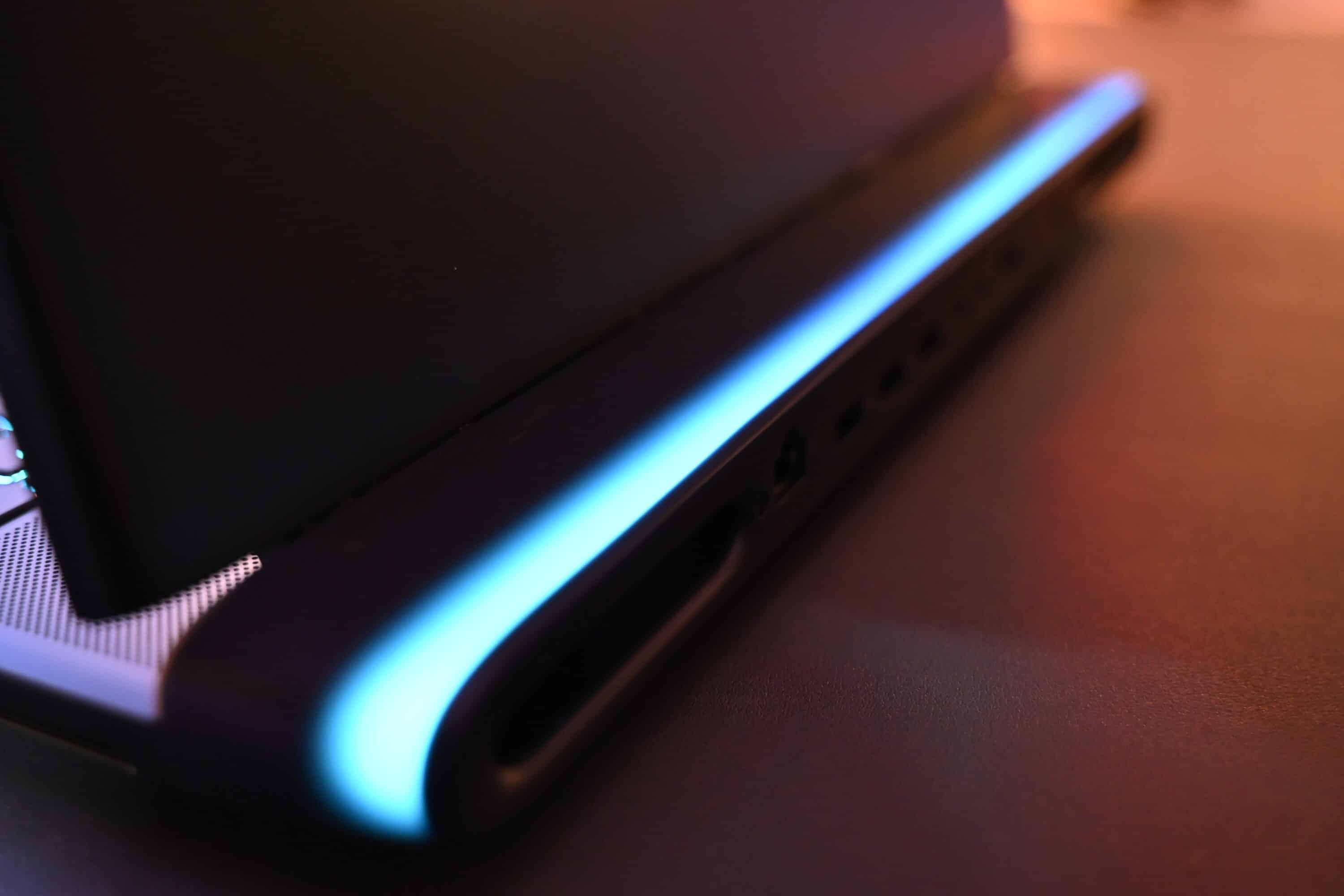 Abgerundete Kanten, eine nach innen versetzte Anschluss-Leiste an der Rückseite und RGB-Beleuchtung soweit das Auge reicht. Das Gaming-Notebook setzt auf eine einzigartige Optik und sieht dabei richtig edel aus.