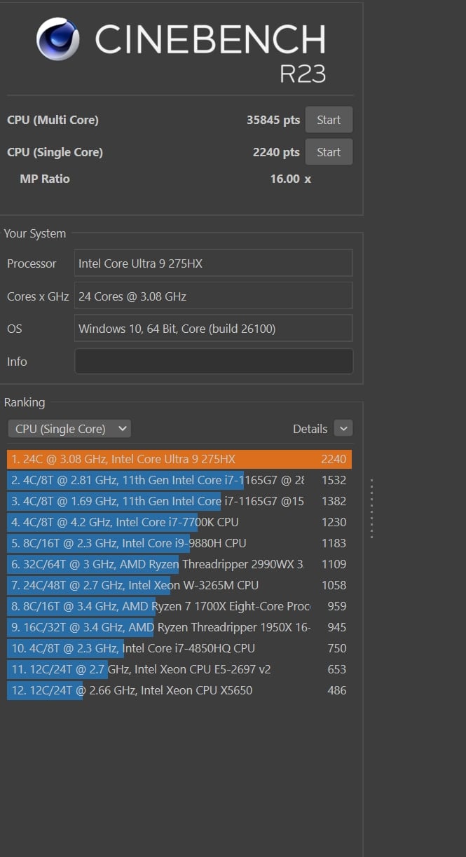 | Cinebench R23 Single Core | 2.240 Pkt. |