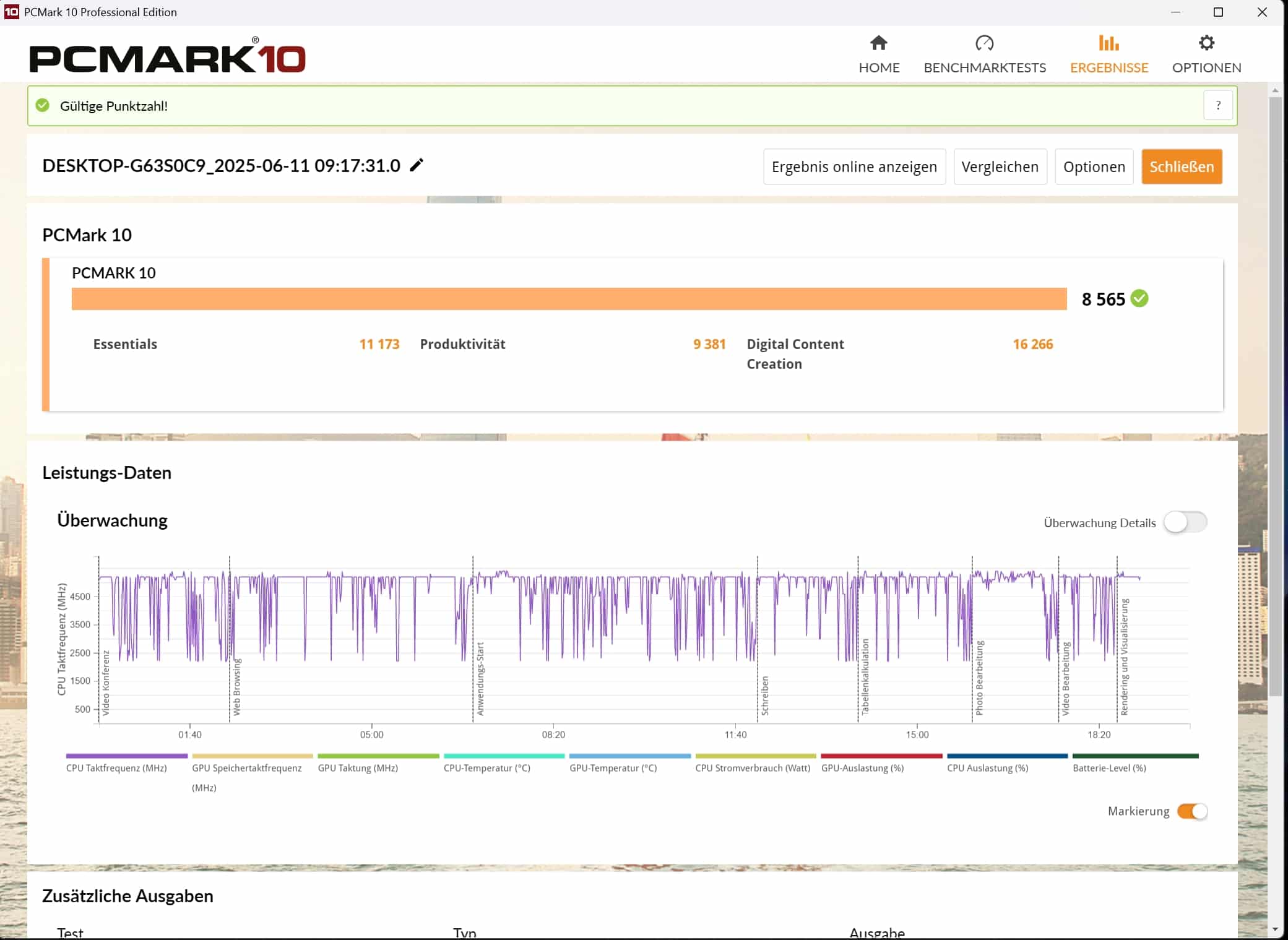 | PCMark 10 Gesamtwert | 8.565 Pkt. |