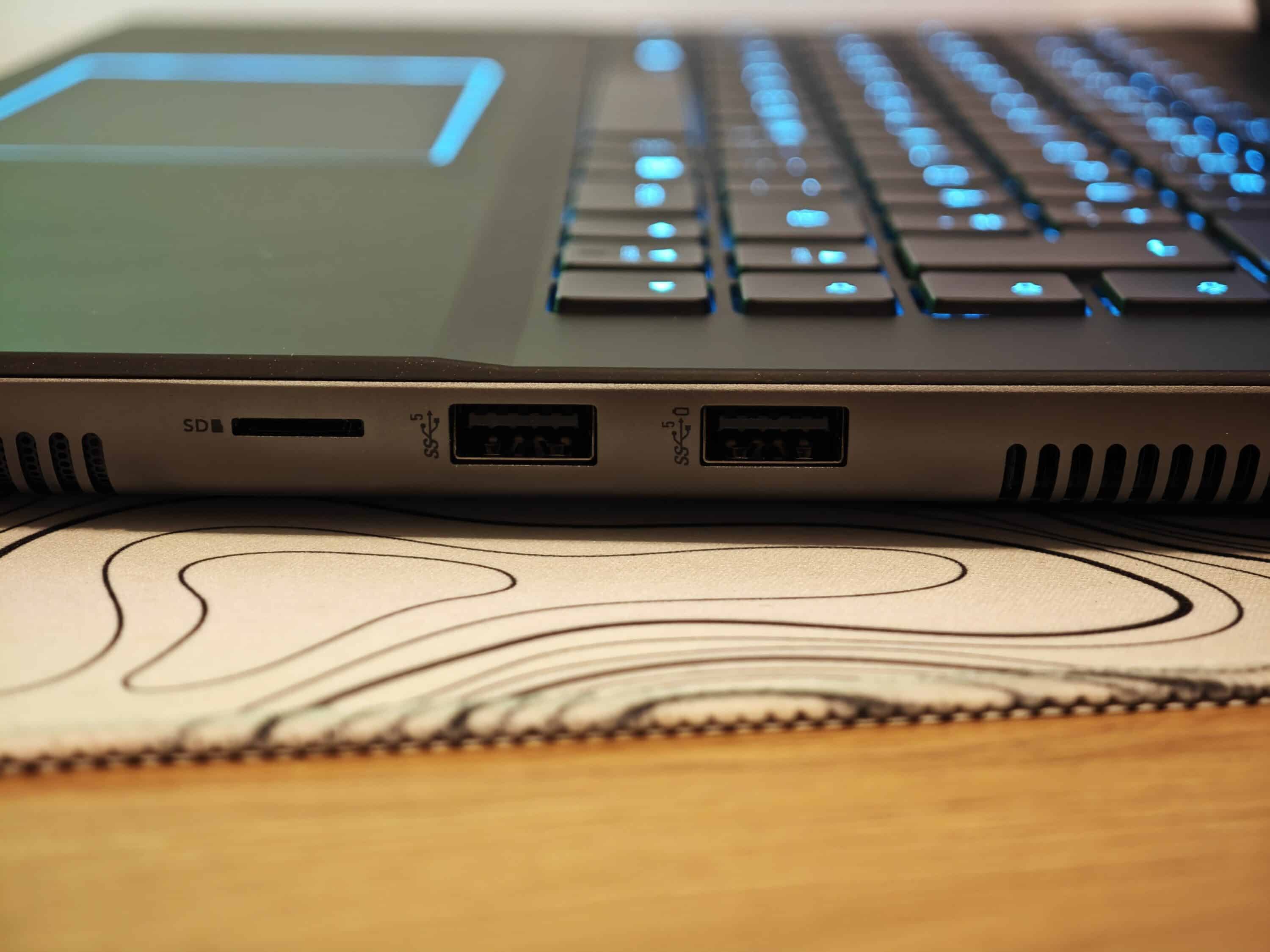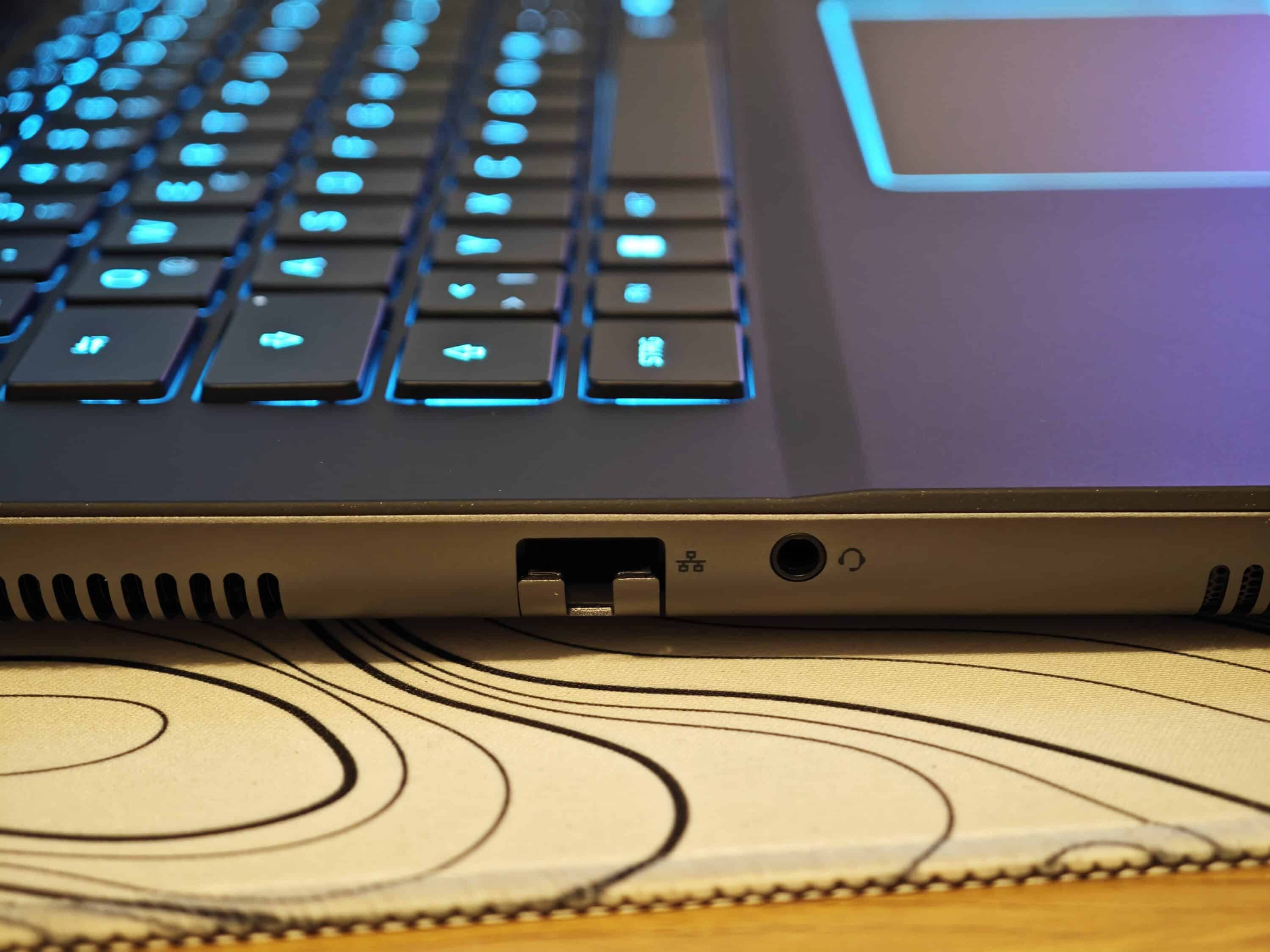 Auch die Auswahl an Anschlüssen gefällt. Diese verteilt sich beim Alienware m16 R2 auf die Rückseite, sowie die beiden Seiten. Links stehen 2,5-Gbps RJ45-LAN sowie ein 3,5-mm-Klinkenanschluss zur Verfügung. Rechts gibt es einen microSD-Kartenleser, sowie zweimal USB-A 3.2 Gen 1.