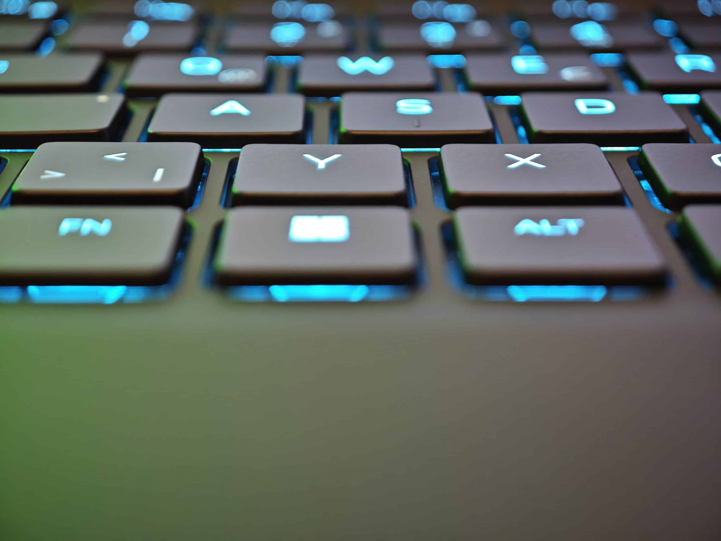 Die Pfeiltasten sind angenehm groß, was gerade Linkshänder freuen dürfte. Daneben legt der Hersteller die Tasten zur Mediensteuerung und Stummschaltung der Lautsprecher. Ungewohnt, aber durchaus praktisch, da das mehr Platz für die Sekundärfunktionen der F-Tastenreihe bleibt. Hier gibt es beispielsweise einen Button für den Hochleistungsmodus oder den besonders leisen Stealth-Modus.