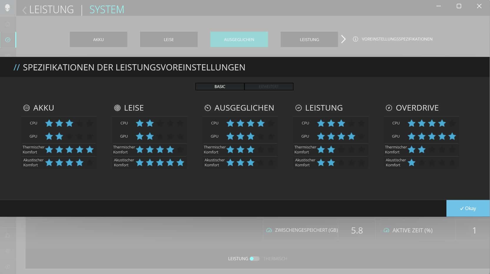 Die Leistung des Alienware m16 R2 habe ich mir, wie immer, in verschiedenen Benchmarks genauer angeschaut. Dabei kam vorwiegend das „Ausgeglichen“ Profil zum Einsatz, das bereits standardmäßig ausgewählt ist.