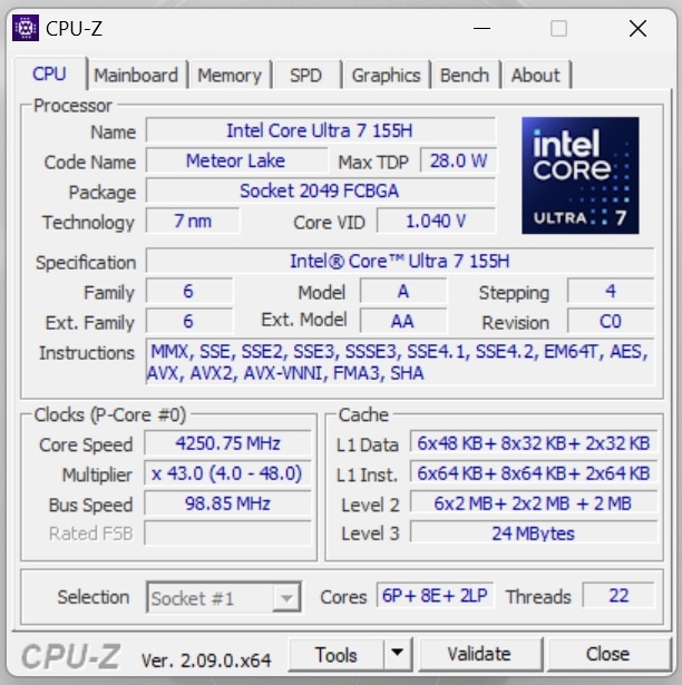 | Prozessor | Intel Core Ultra 7 155H (16 Kerne, 3.8 – 4.8 GHz); 28W TDP |
