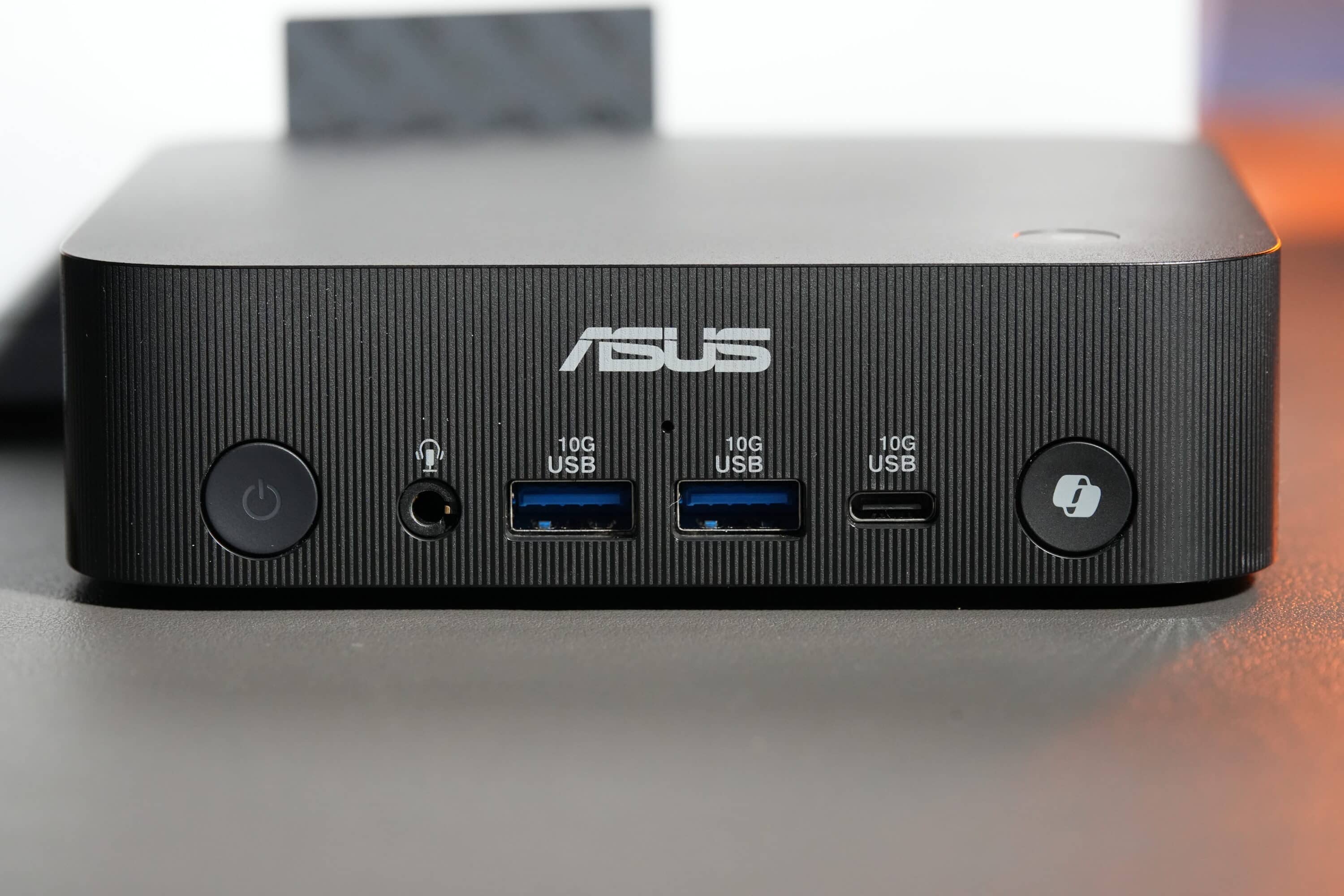 ASUS verteilt die Anschlüsse des ExpertCenter PN54 auf die Vorder- und Rückseite und liefert dabei eine überzeugende Auswahl an Ports.