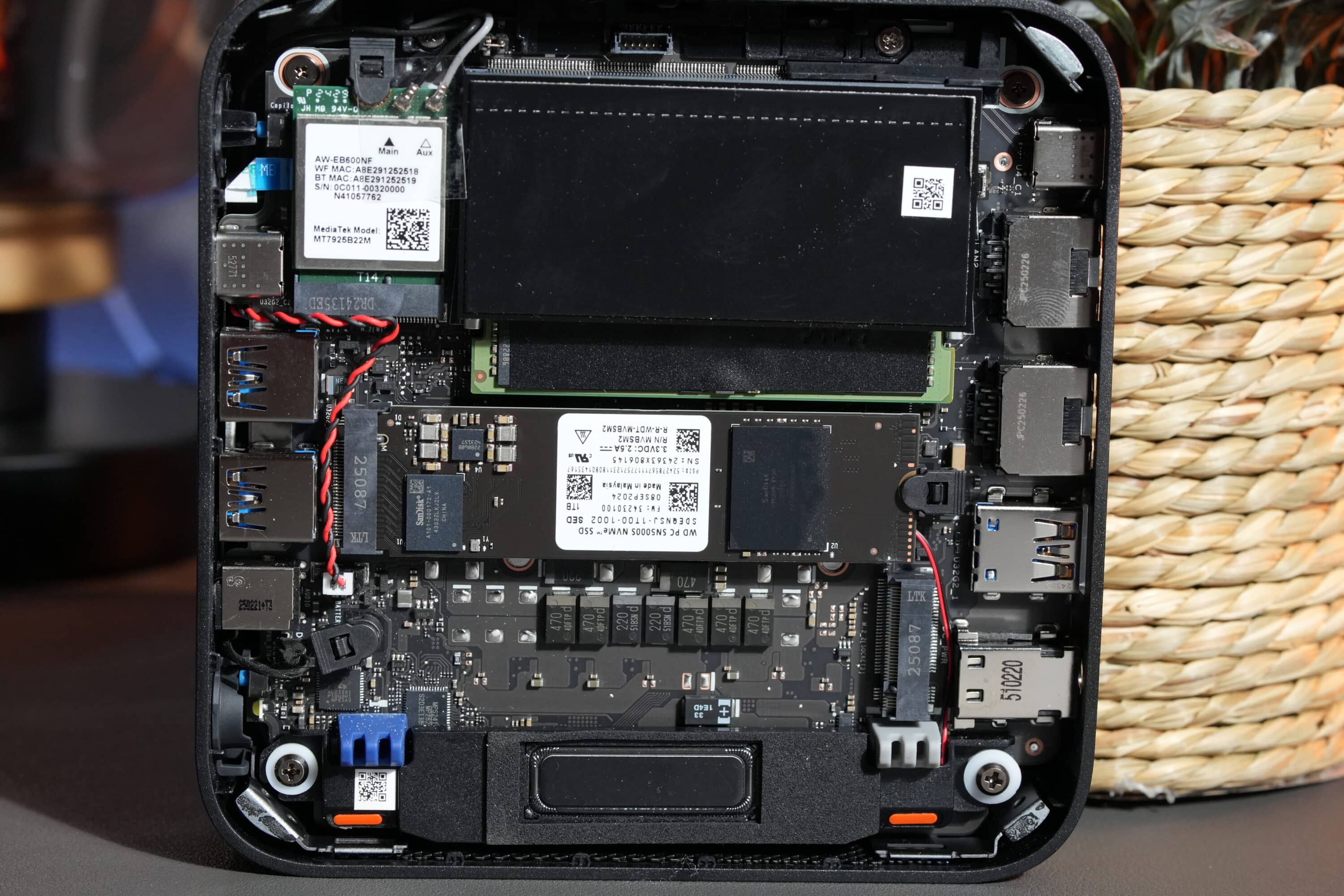 Die verbaute SSD ist eine Western Digital WD Blue SN5000, die mit Lesegeschwindigkeiten von bis zu 5.000 MB/s und Schreibraten von bis zu 4.000 MB/s daherkommt. Bei der 4K-Leistung ist diese zwar anderen SSDs unterlegen, liefert aber noch immer hervorragende Werte, die die SSD auch auf Dauer aufrecht erhalten kann. Damit ist der interne Speicher auch für anspruchsvolle Anwendungen schnell genug und deutlich schneller als alles, was ich bisher so in Mini-PCs gesehen habe.