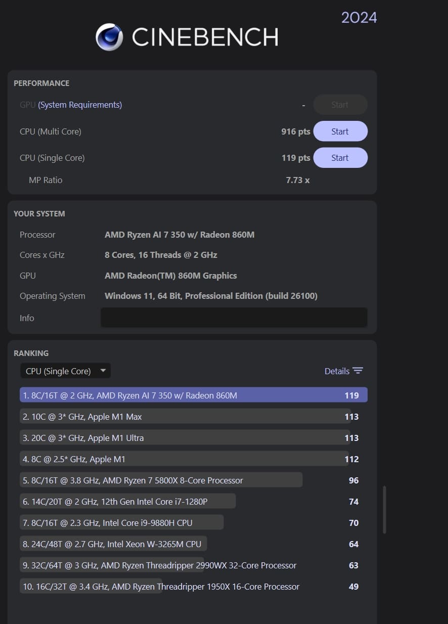 | Cinebench 2024 Single Core | 119 Pkt. |