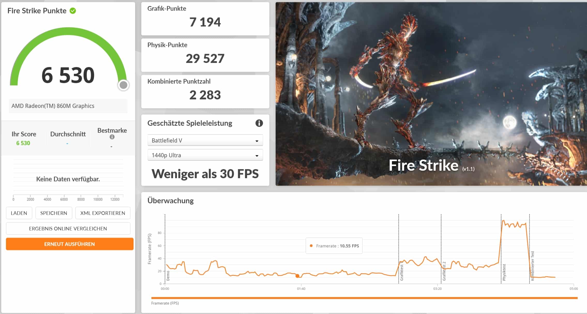 | Fire Strike Gesamt | 6.530 Pkt. |