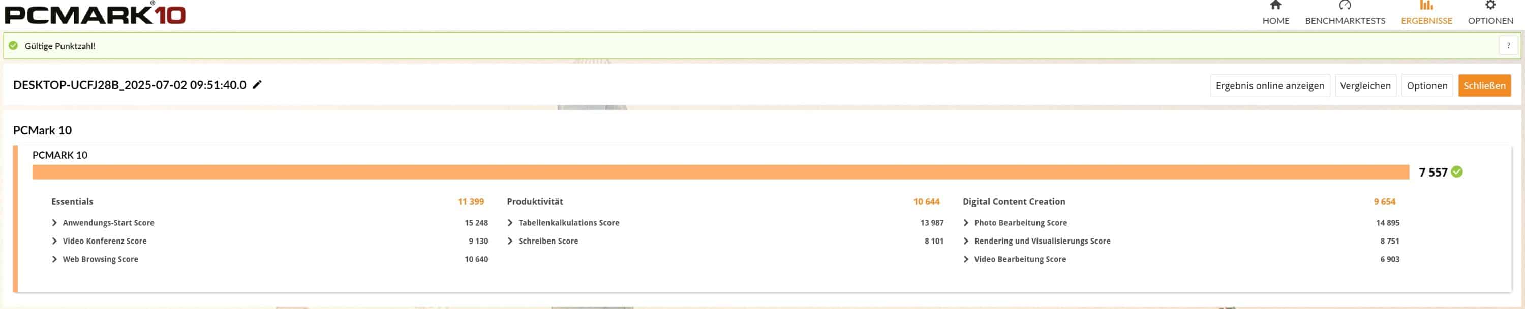 | PCMark 10 Gesamtwert | 7.557 Pkt. |