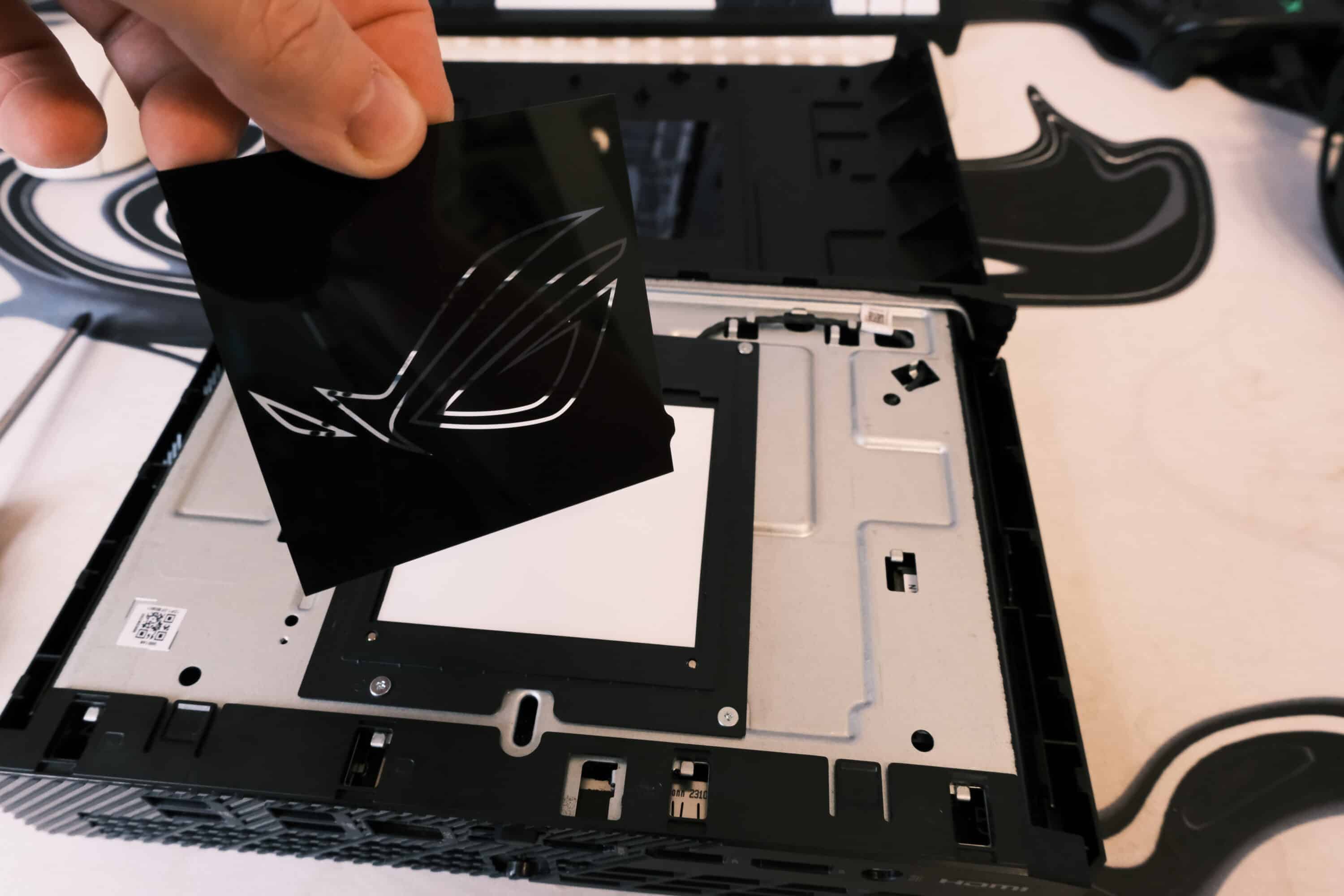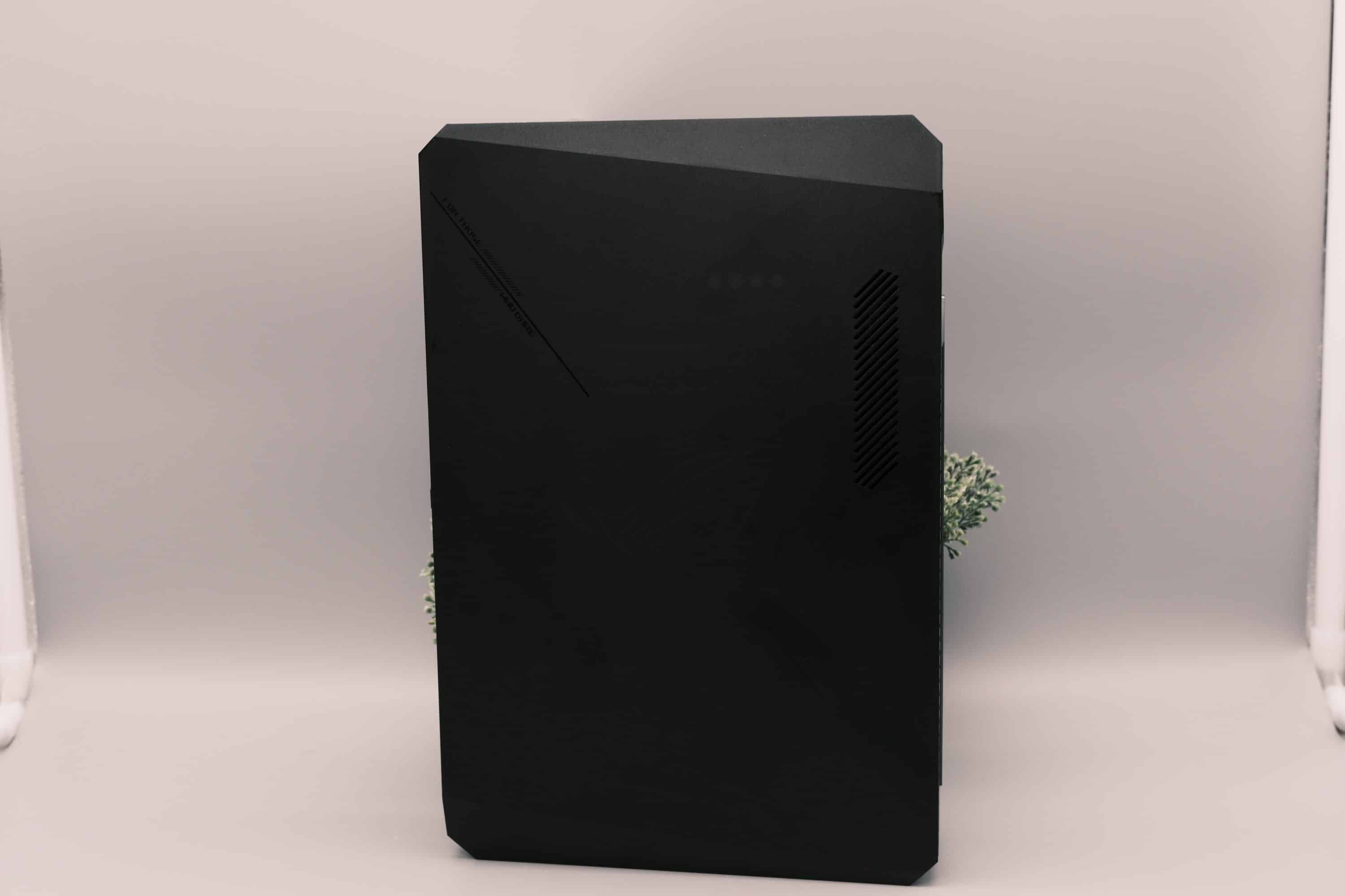 Das beleuchtete ROG-Logo scheint dabei angenehm dezent durch das semi-transpartente Gehäuse, unter dem es als Schablone vorliegen. Diese kann auf Wunsch frei rotiert werden, weitere Schablonen legt der Hersteller dem Lieferumfang bei.