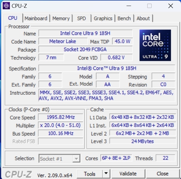 | Prozessor | Intel Core Ultra 9 185H (16 Kerne, 3.8 – 5.1 GHz) |