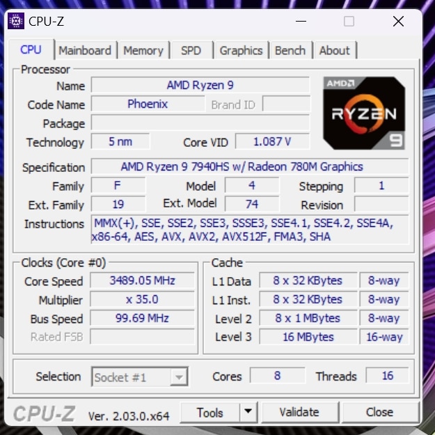 | Prozessor | AMD Ryzen 9 7940HS (8 Kerne, 4,0 – 5,2 GHz) |
