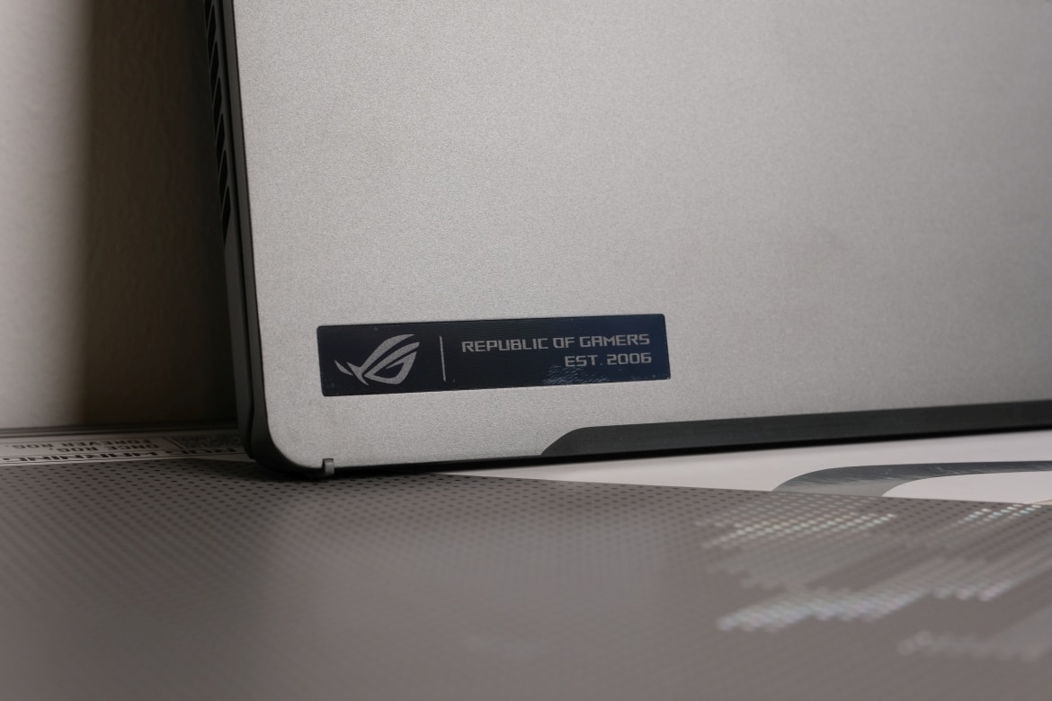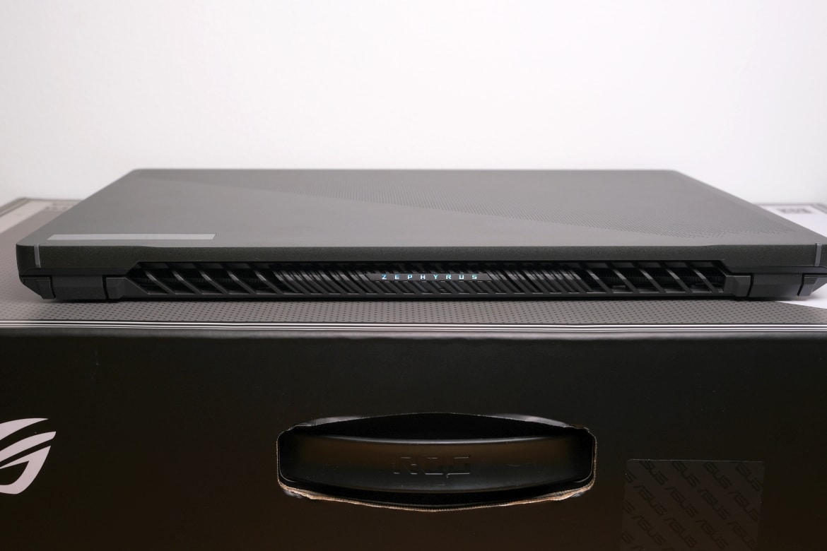 Doch zurück zum schlichten Design: Auf dem Deckel befindet sich ansonsten nur der reflektierende „Republic of Gamers“ Aufdruck der, gemeinsam mit dem „Zephyrus“-Schriftzug an der Rückseite des Laptops den einzigen Hinweis auf die unter der Haube schlummernden Power markiert.