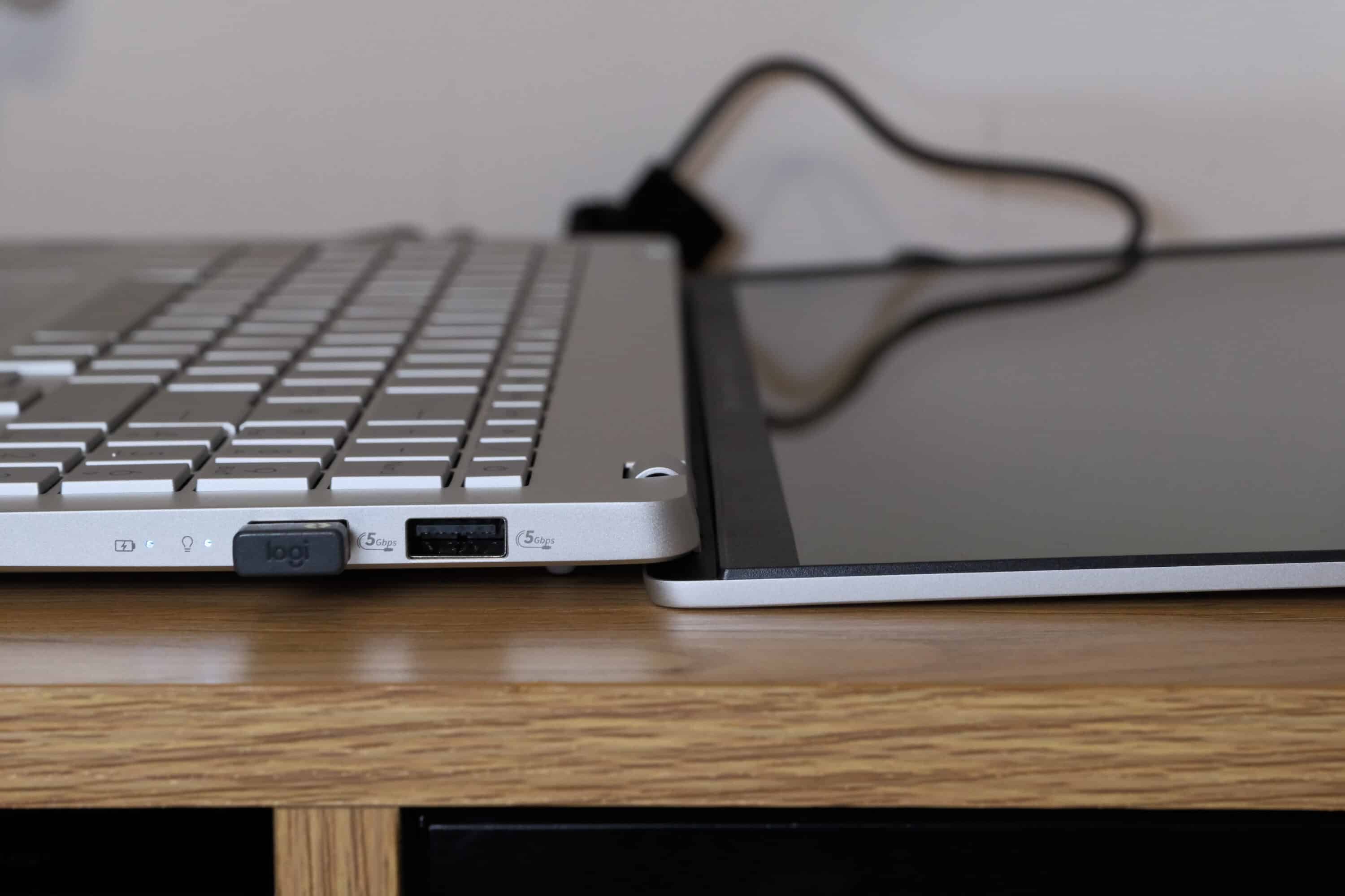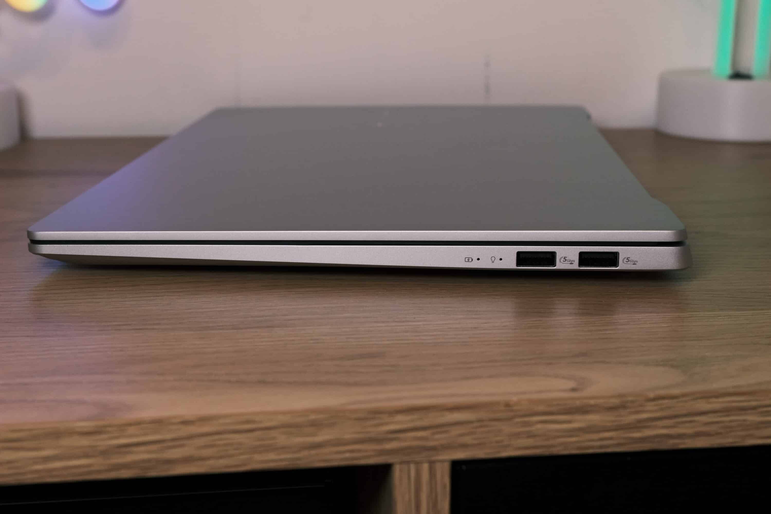 Rechts kommen zwei weitere USB-A 3.2 Gen 1-Ports mit 5 GBit/s hinzu. Der microSD-Kartenleser bietet leider nur geringe Geschwindigkeiten, für gelegentliche Übertragungen kleiner Dateien reicht es aber allemal.