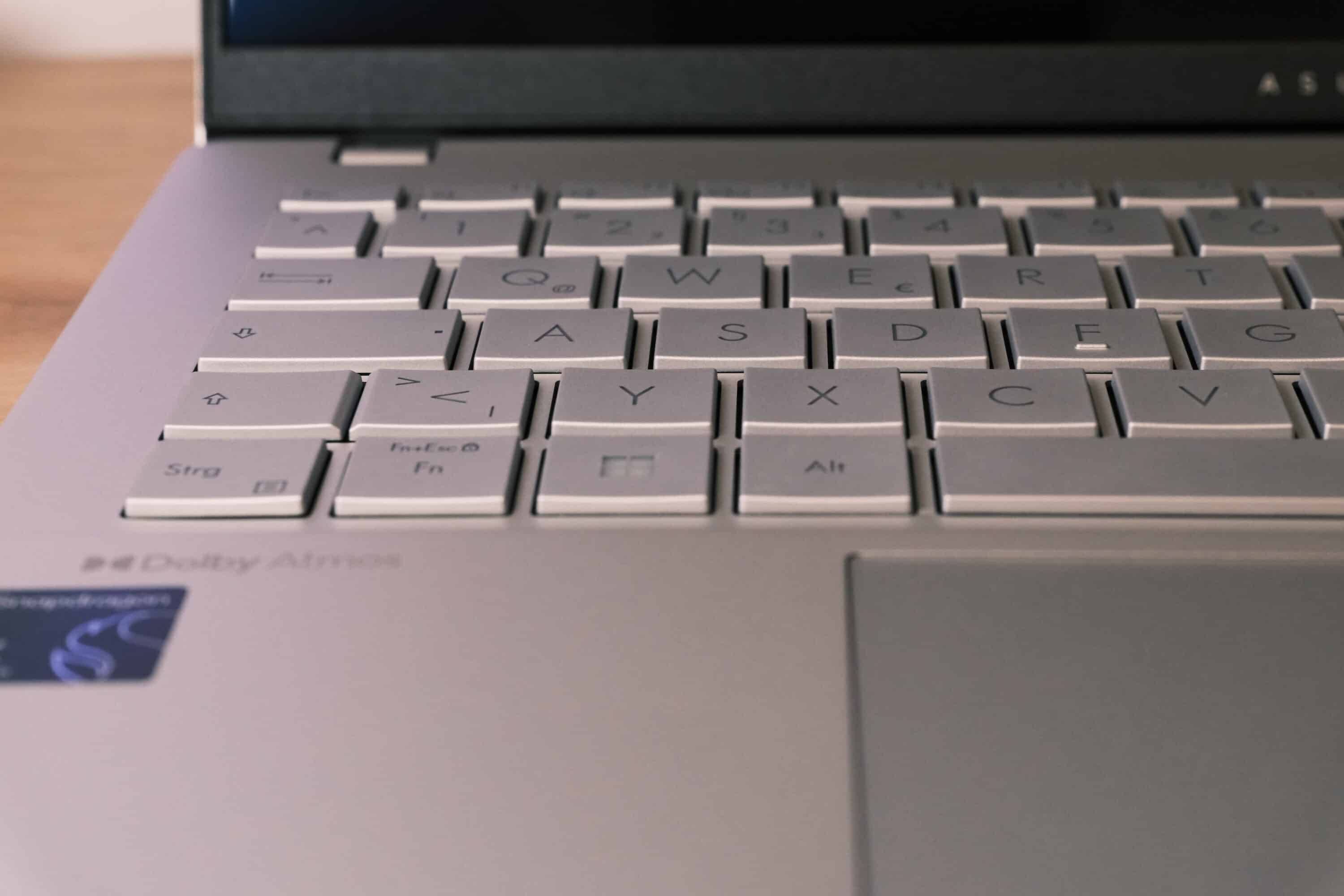Auf dem Keyboard lässt es sich sehr angenehm schreiben. Hubweg und Feedback der Tasten fallen angenehm aus, sodass sich auch längere Texte problemlos tippen lassen. Hinzu gestellt sich ein Trackpad, das mit 13 cm x 8,5 cm angenehm groß ausfällt und minimal nach links versetzt ist.
