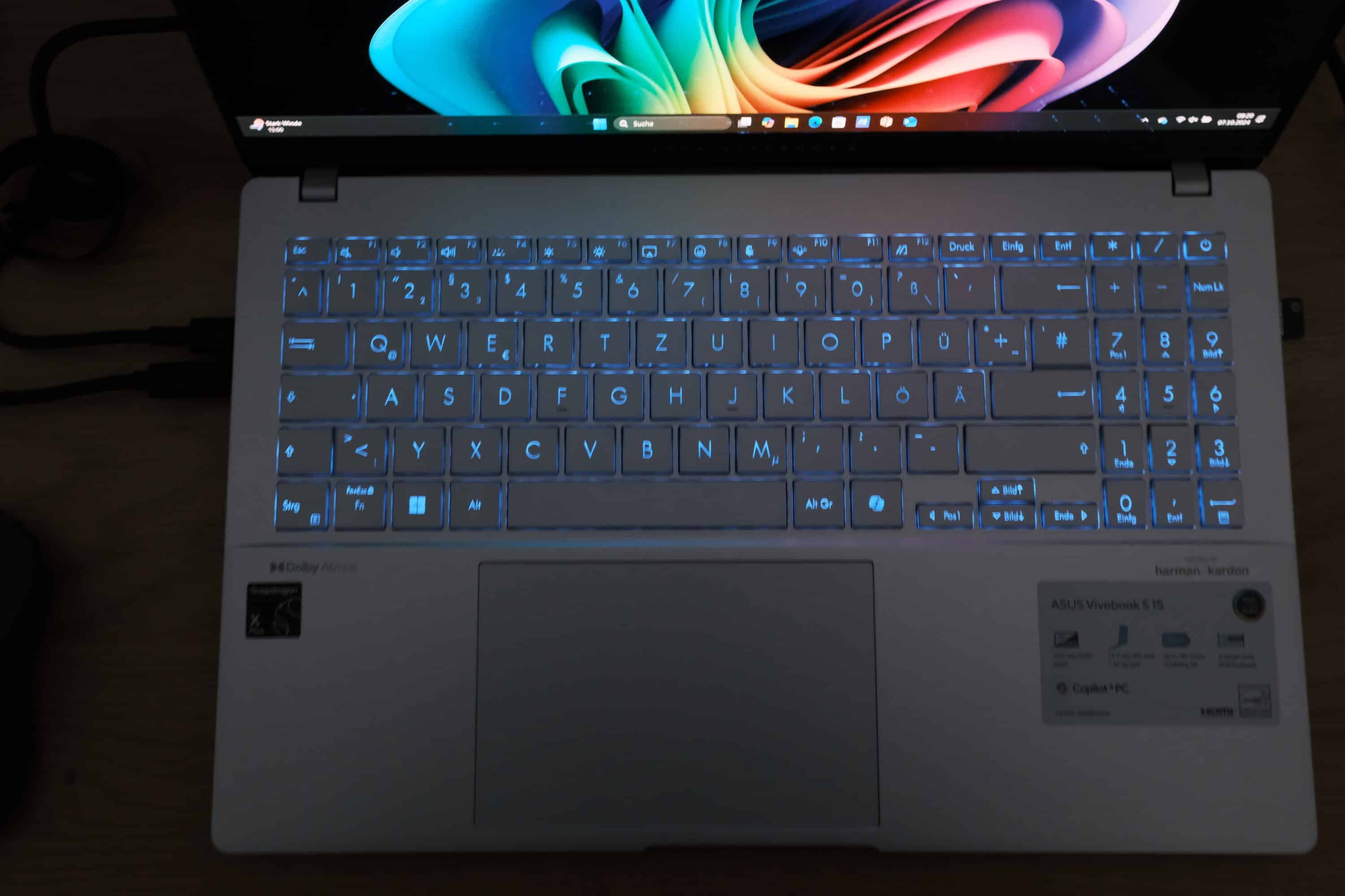 Als Copilot+ Notebook unterstützt das Vivobook S 15 natürlich auch die KI-Funktionen von Windows. Allzu viel solltet ihr davon allerdings nicht erwarten. Der Chatbot und die Bild-Generierung sind nichts, was man nicht auch mit Onlinetools (wesentlich besser) hinbekommen würde.