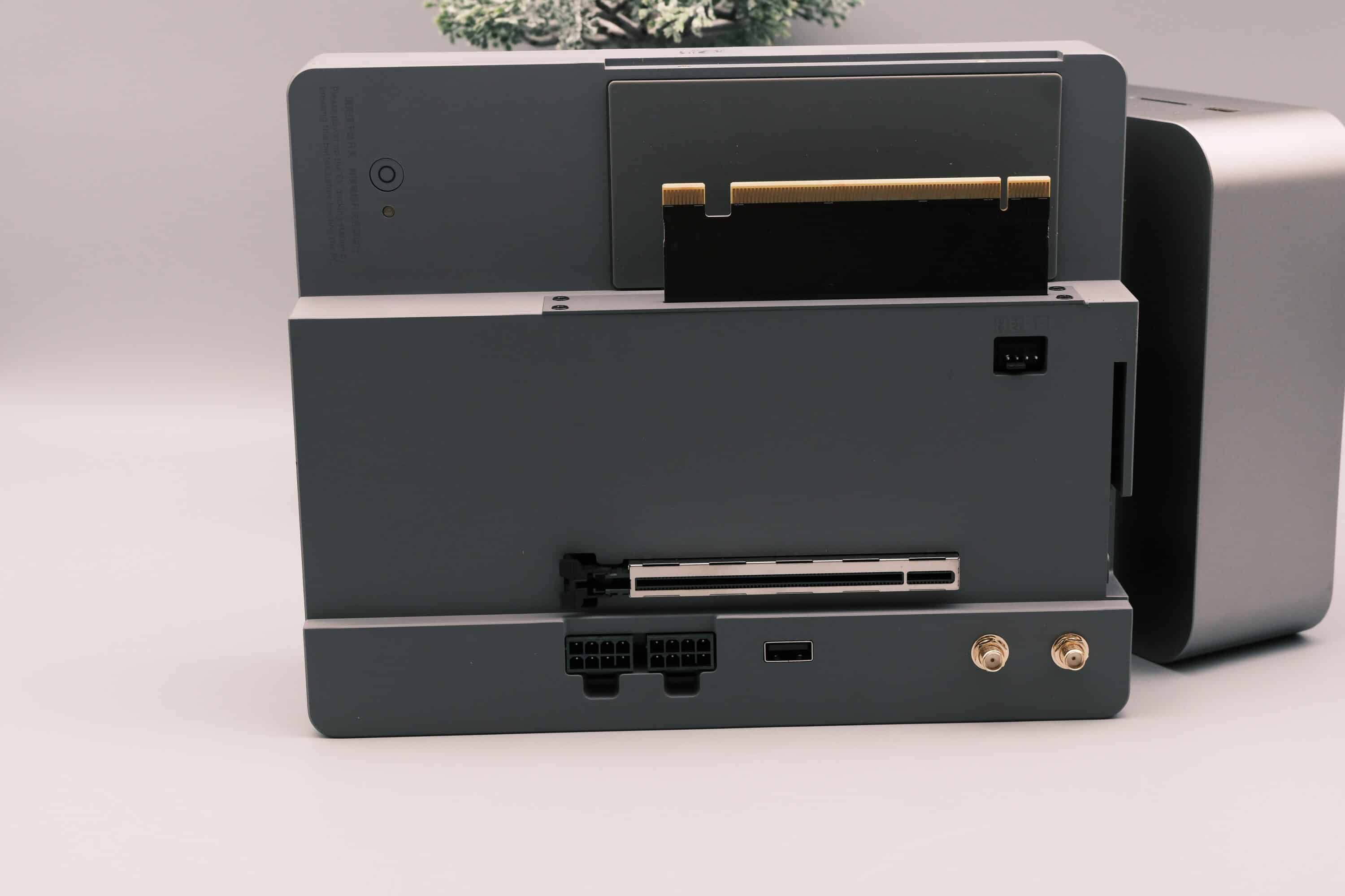 Als PCIe-Riser ohne proprietäre Anschlüsse kann der Mini-PC einfach auf das Dock gesteckt werden. Das schränkt natürlich die Kompatibilität ein, denn nur Mini-PCs der GTi-Modellreihe von Beelink lassen sich mit dem Dock verwenden.