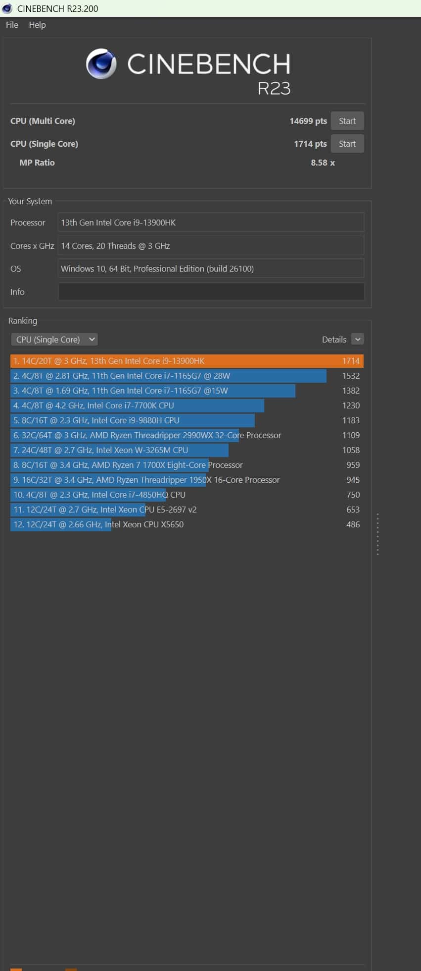 | Cinebench R23 Single Core | 1.714 Pkt. |