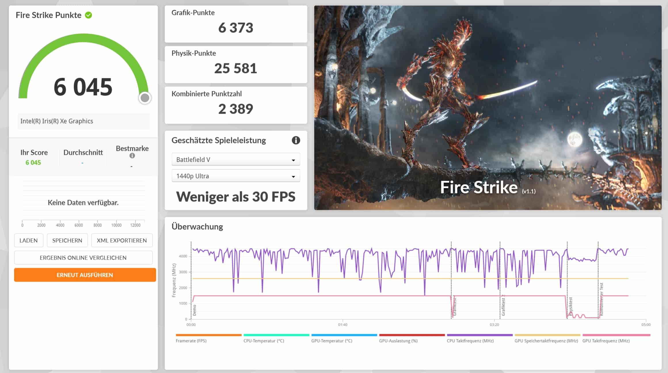 | Fire Strike Gesamt | 6.045 Pkt. |