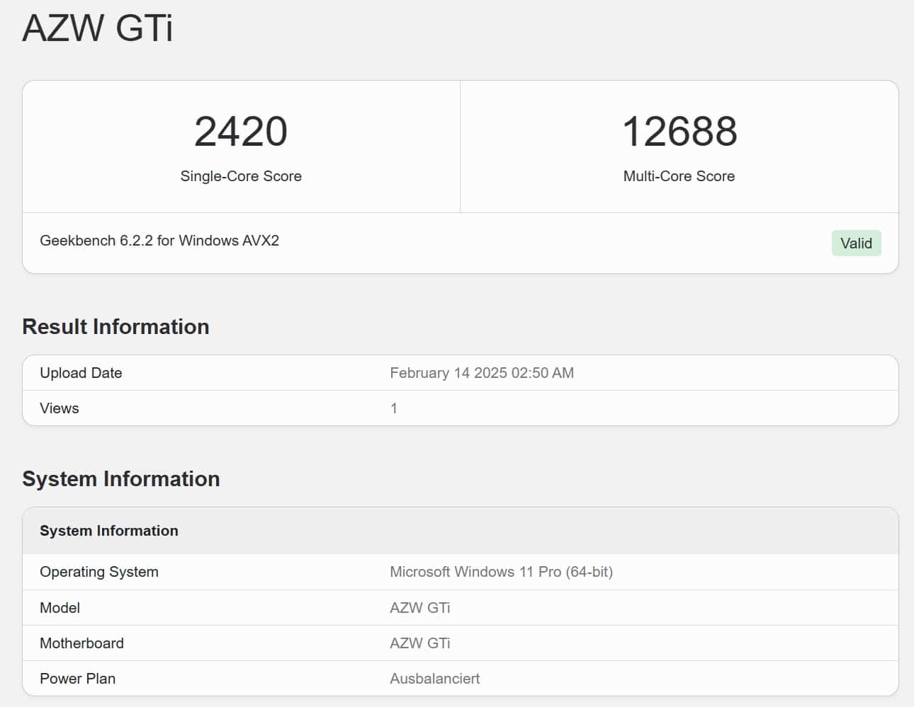 | Geekbench 6 Multi Core | 12.688 Pkt. |