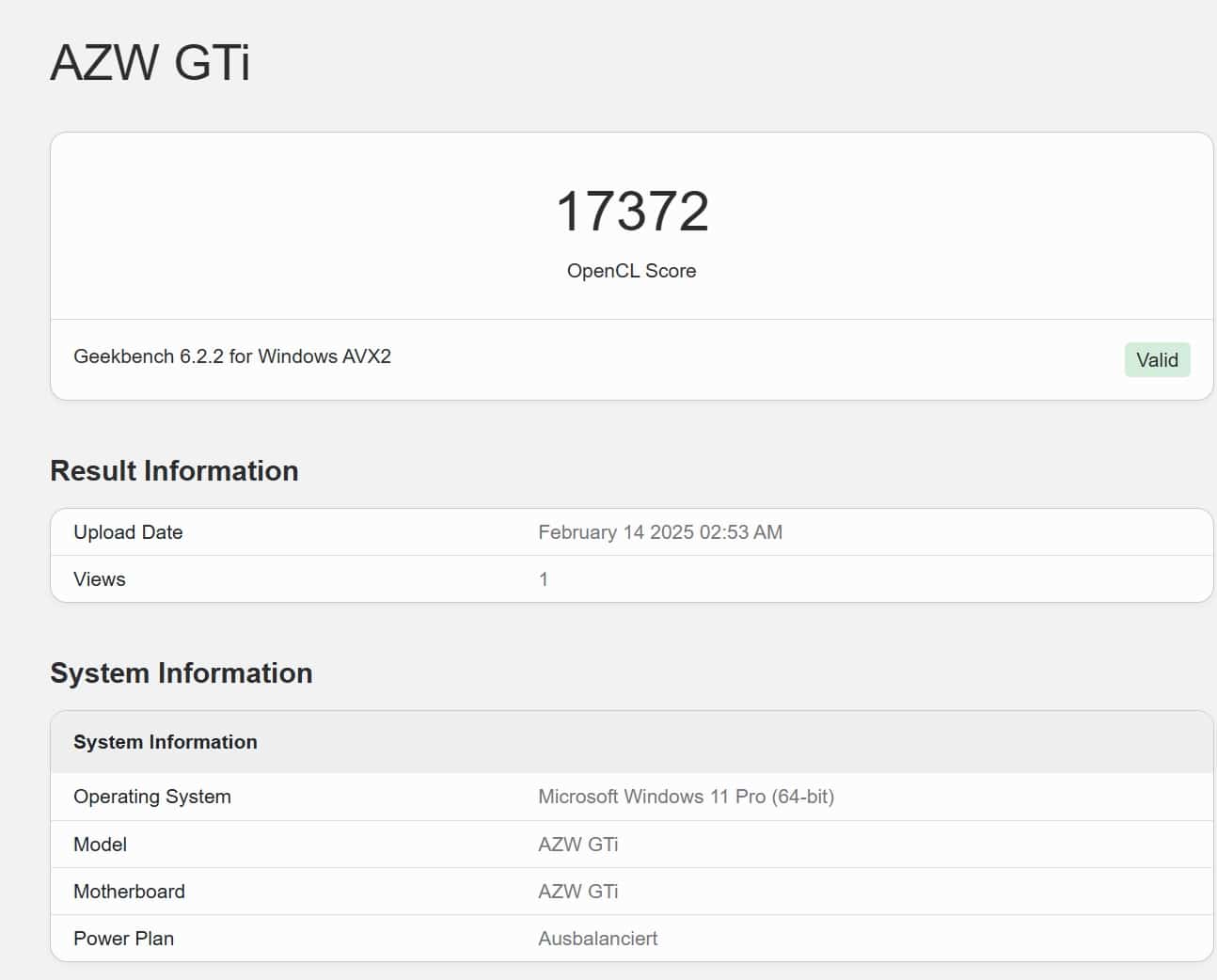 | Geekbench 6 GPU | 17.372 Pkt. |