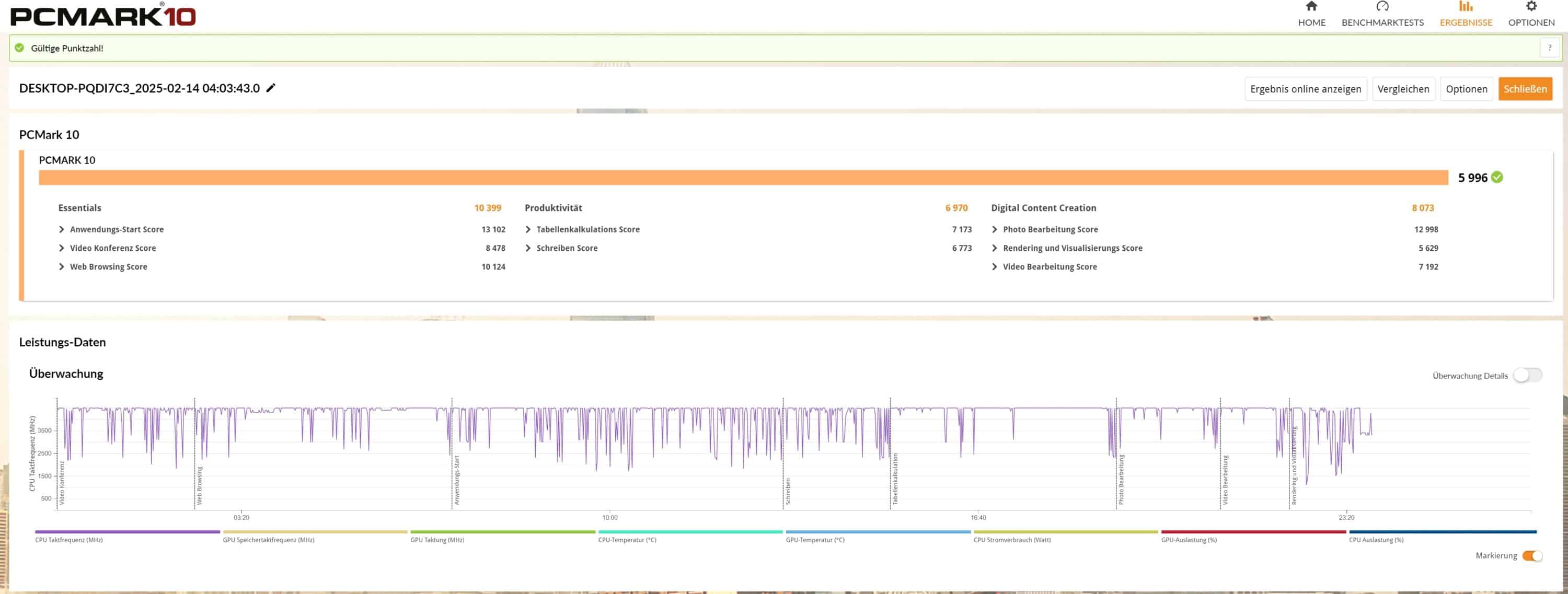 | PCMark 10 Gesamtwert | 5.996 Pkt. |