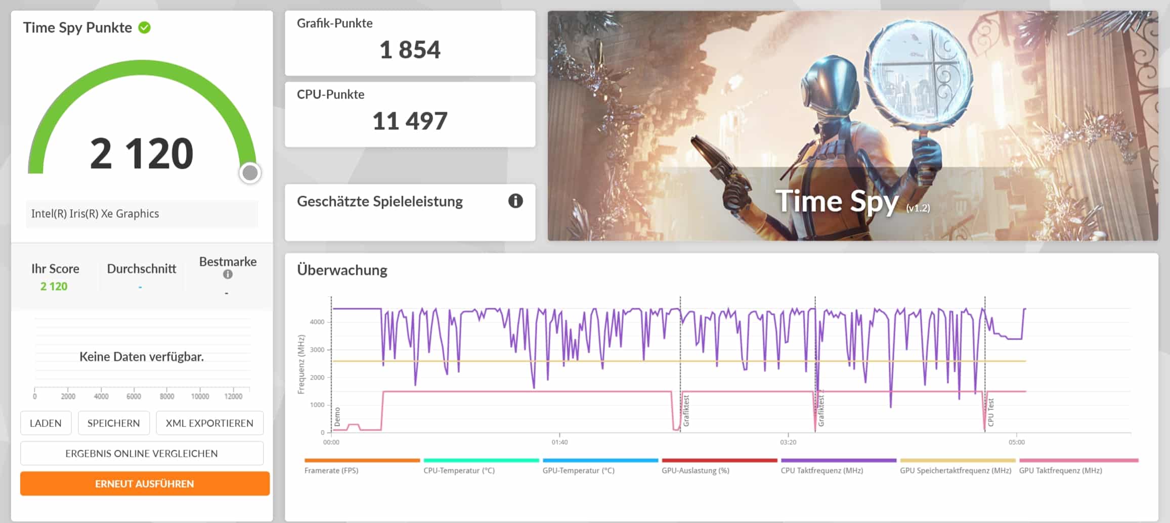 | 3DM Time Spy Extreme | 11.194 Pkt. | 10.901 Pkt. | – 2,68 Prozent |
