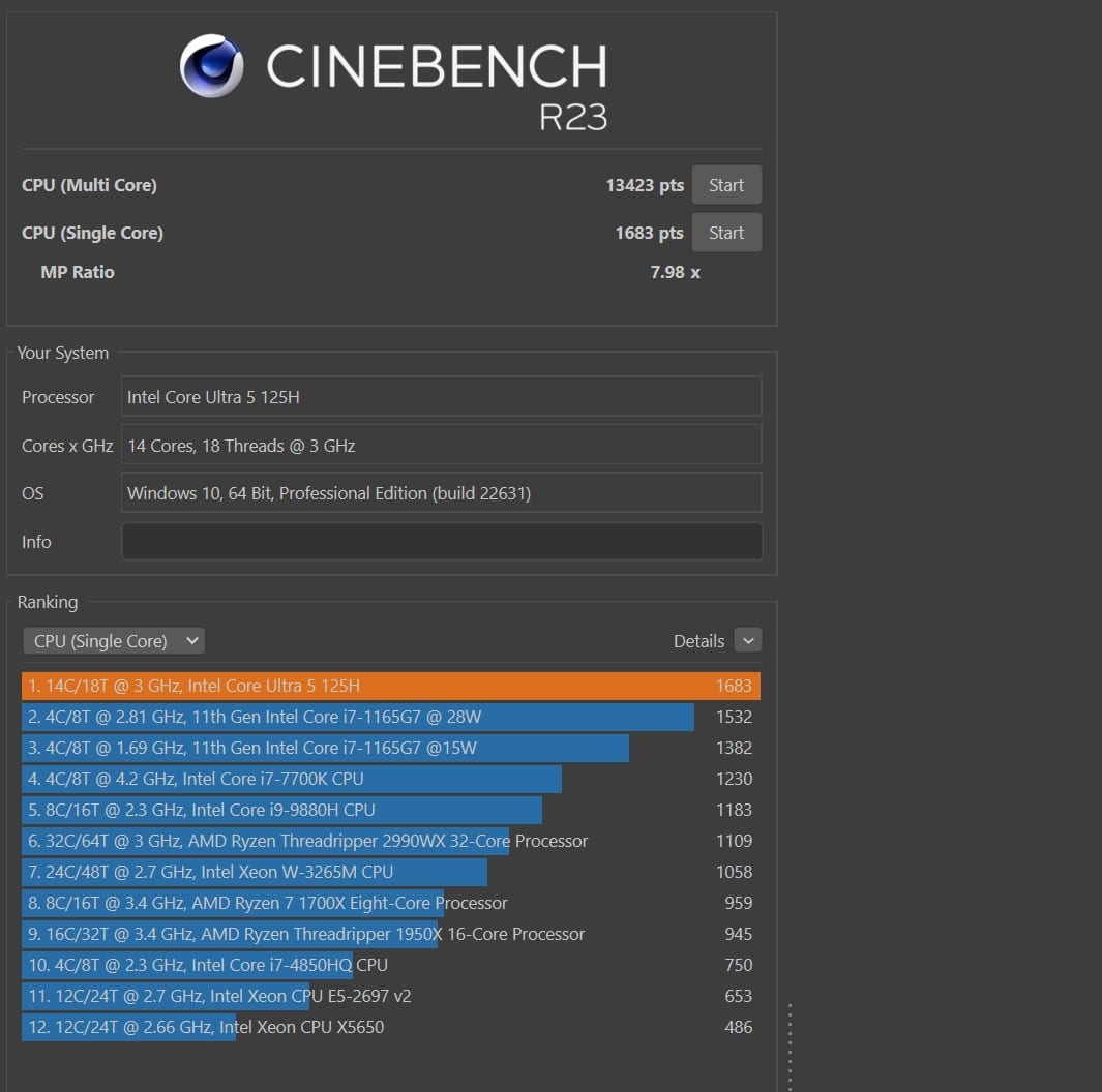 | Cinebench R23 Single Core | 1.683 Pkt. |
