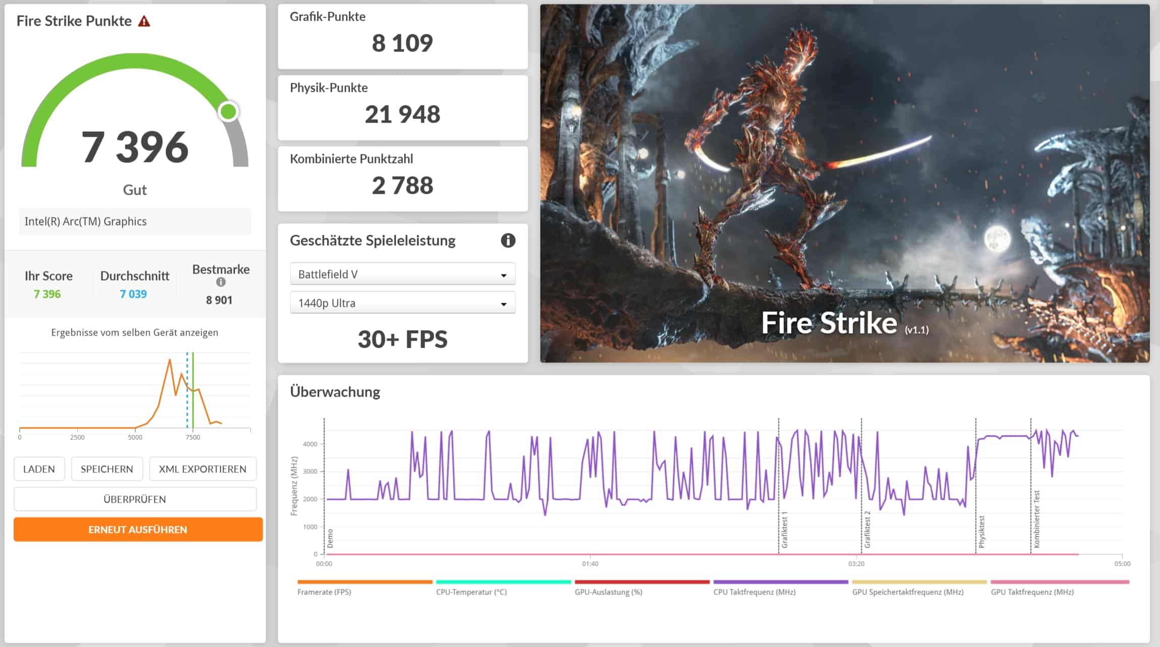 | Fire Strike Gesamt | 7.396 Pkt. |