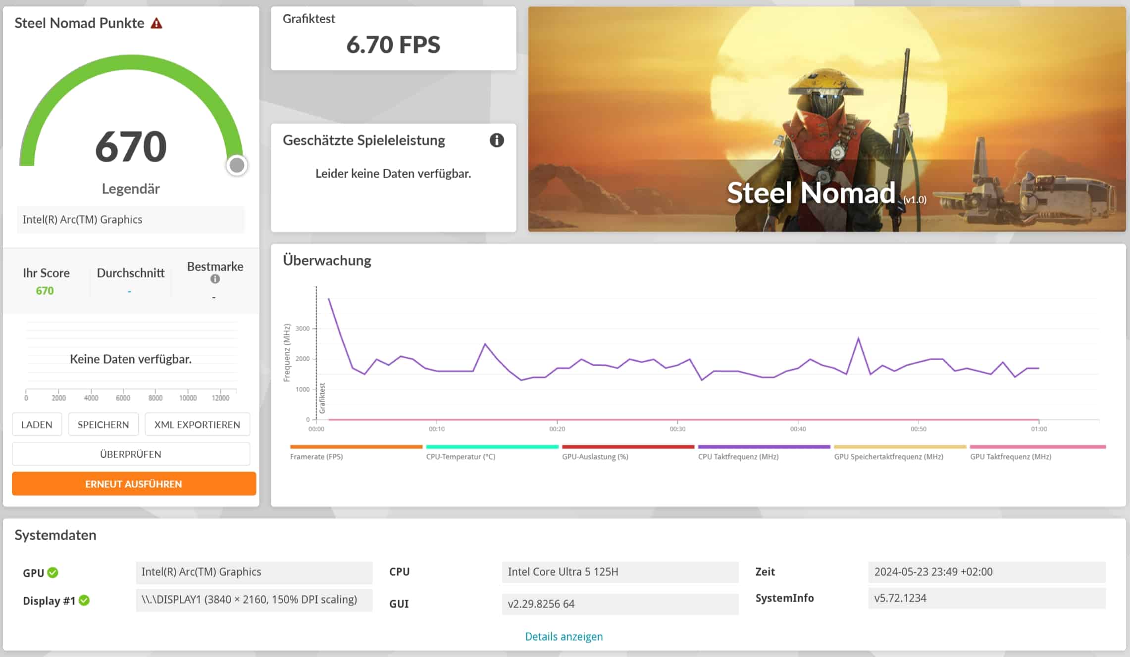 | Steel Nomad Gesamt | 670 Pkt. |
