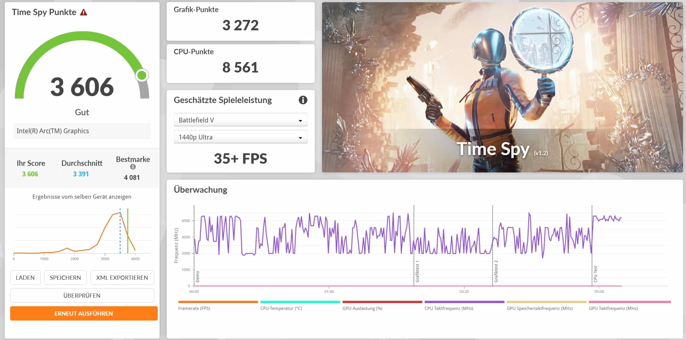 | Time Spy Gesamt | 3.606 Pkt. |