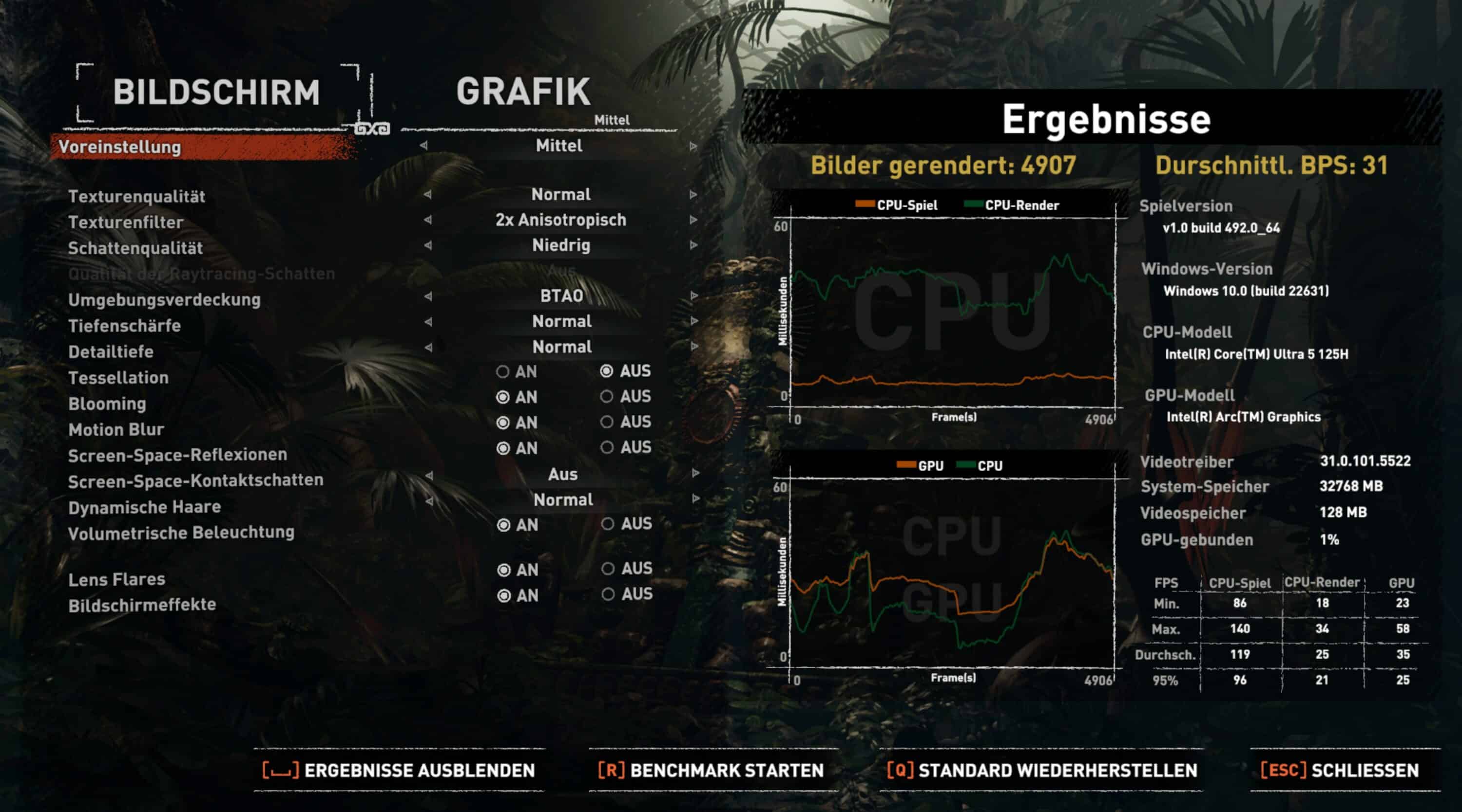 | Shadow of the Tomb Raider (1080p; Mittel) | 31 FPS |