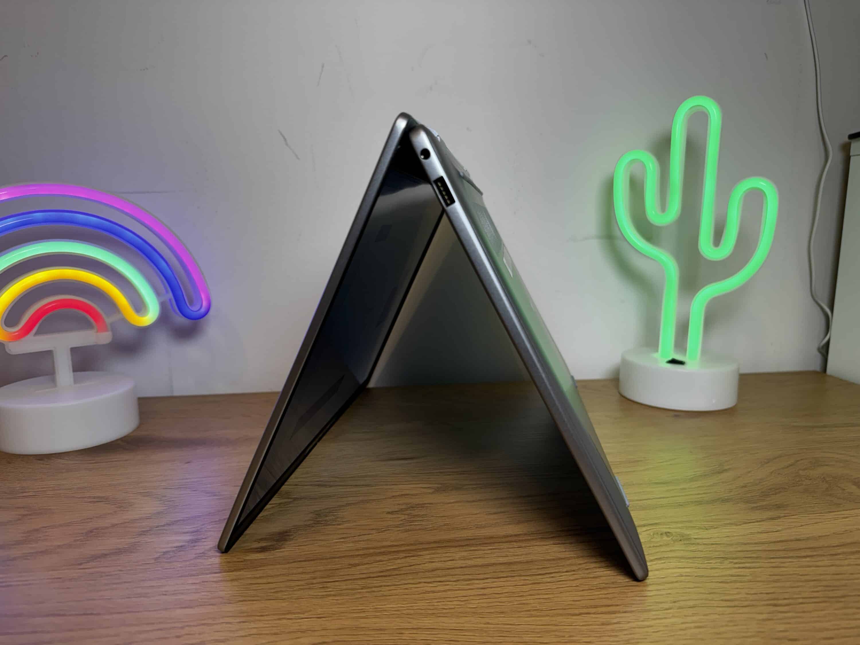 Die Bildwiederholrate von 60 Hz ist für Office-Aufgaben und alltägliche Anforderungen absolut ausreichend, zum Spielen eignet sich der Laptop damit aber eher nicht. Praktischerweise handelt es sich bei dem Display um einen Touchscreen, die Bedienung erfolgt also auf Wunsch auch per Berührung.