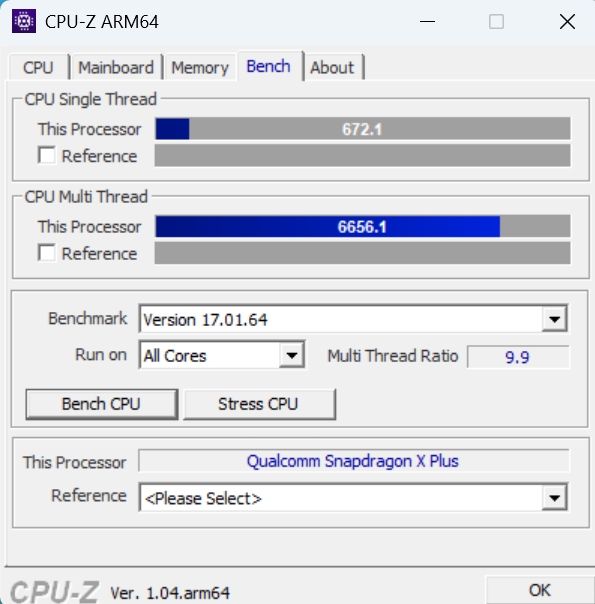 | Prozessor | Snapdragon X Plus, X1P-64-100 (10 Cores, bis zu 3,4 GHz) |