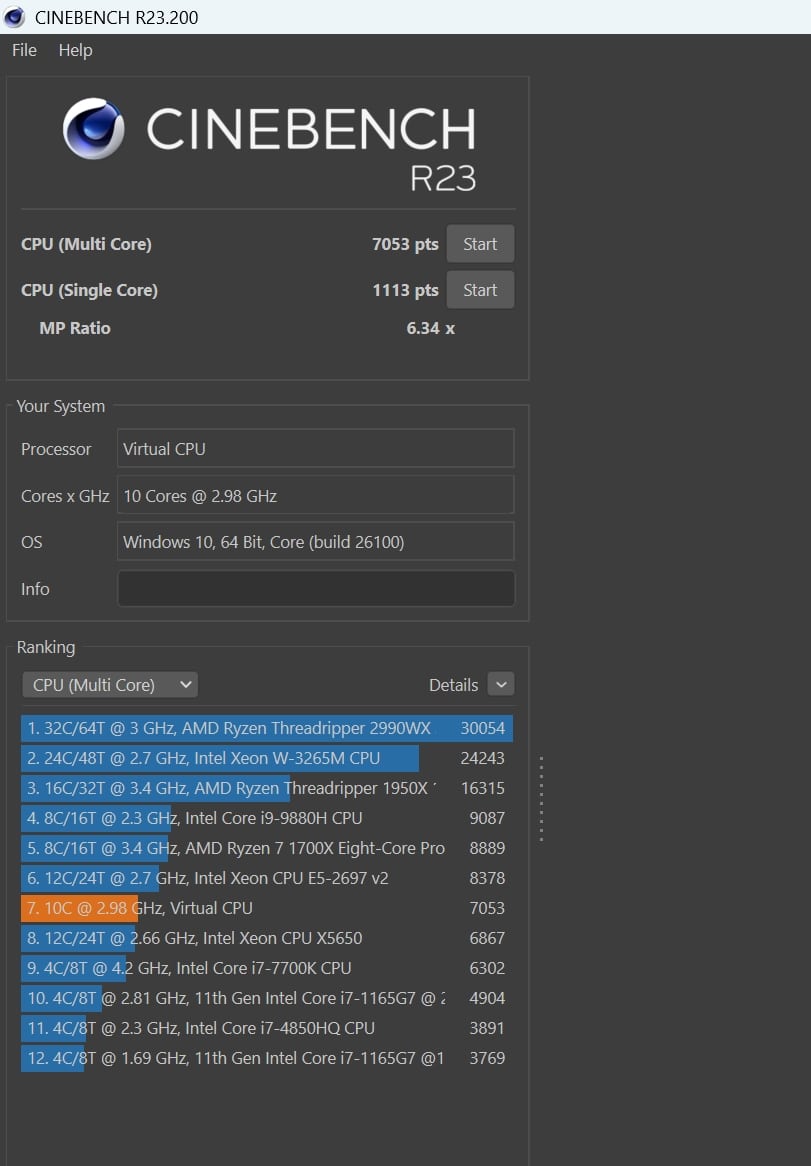 | Cinebench R23 Multi Core | 7.053 Pkt. |