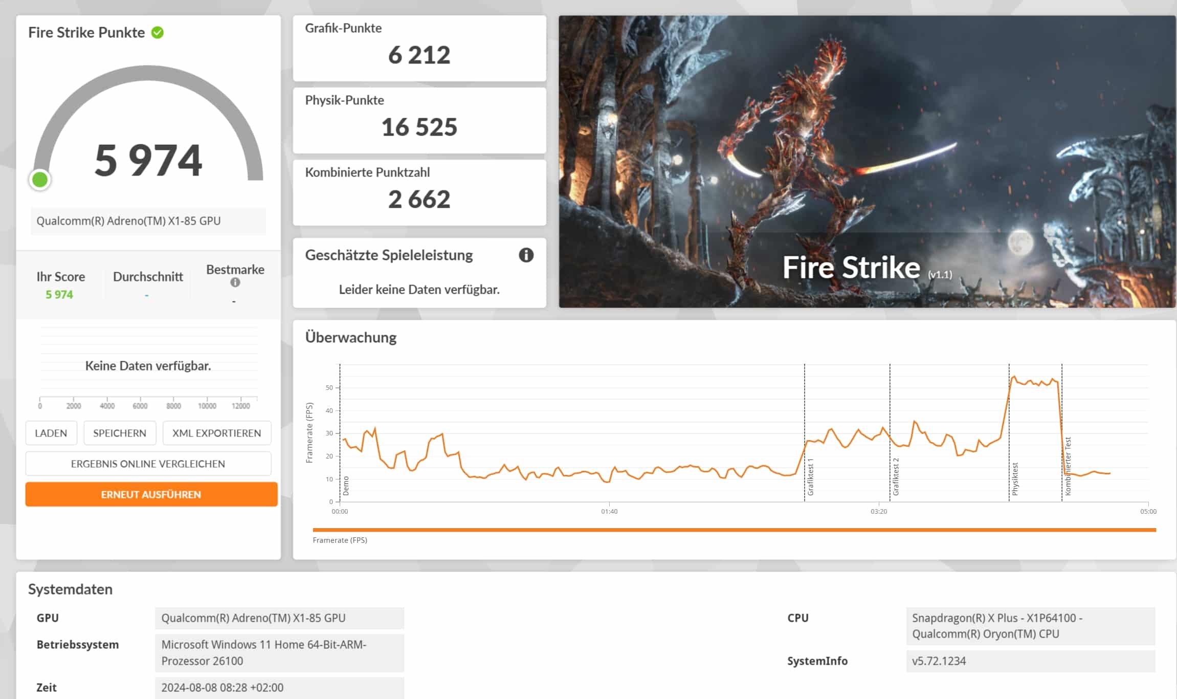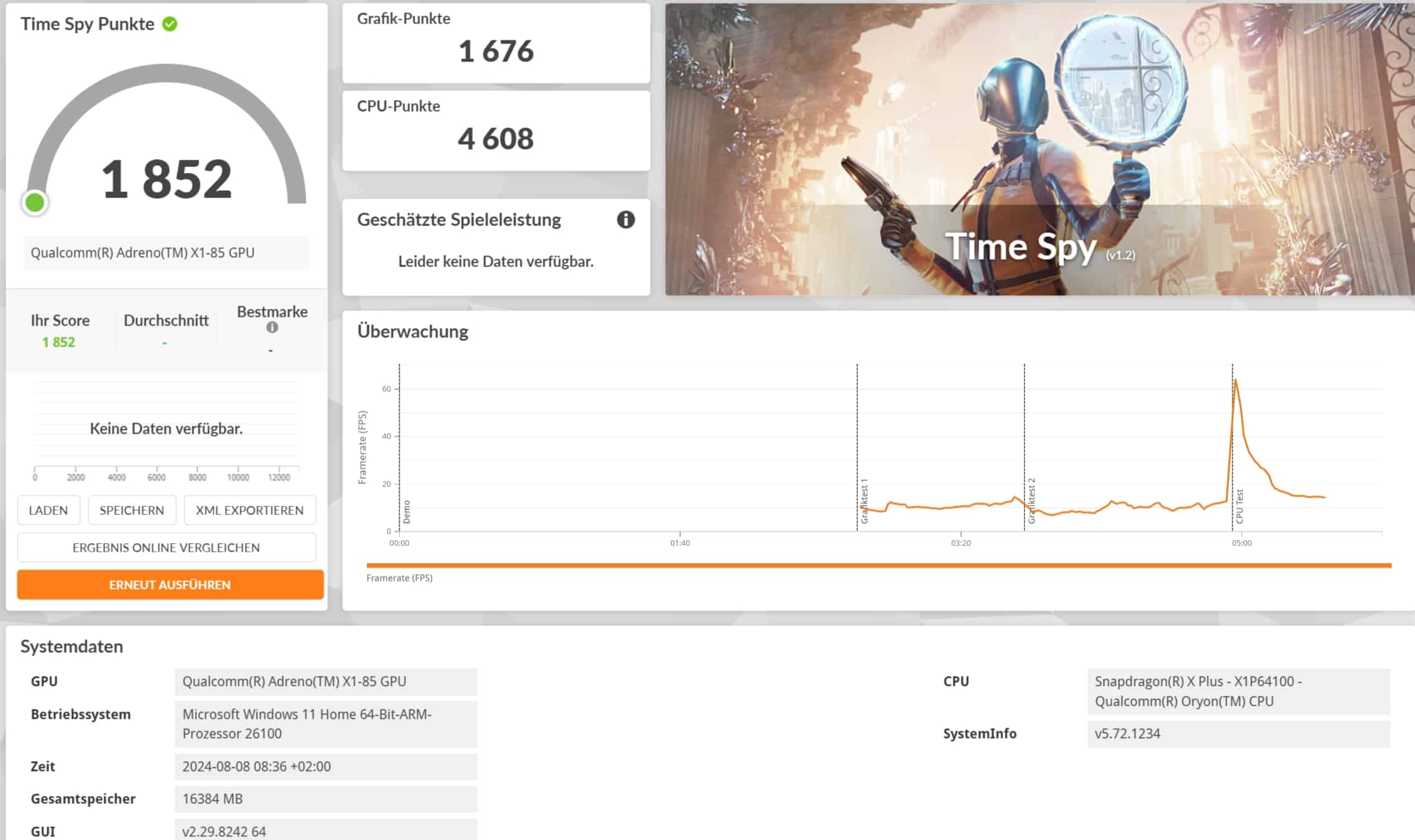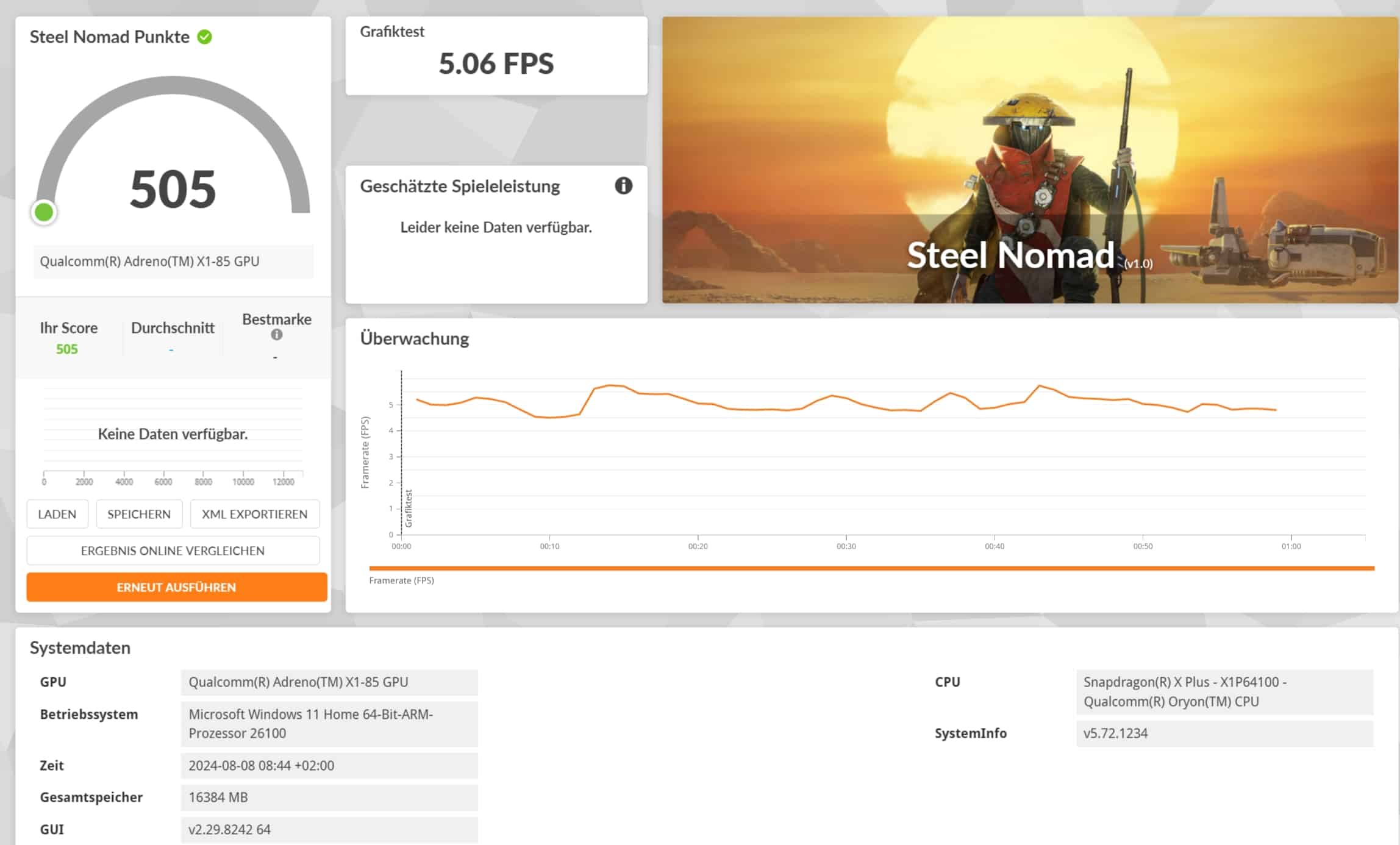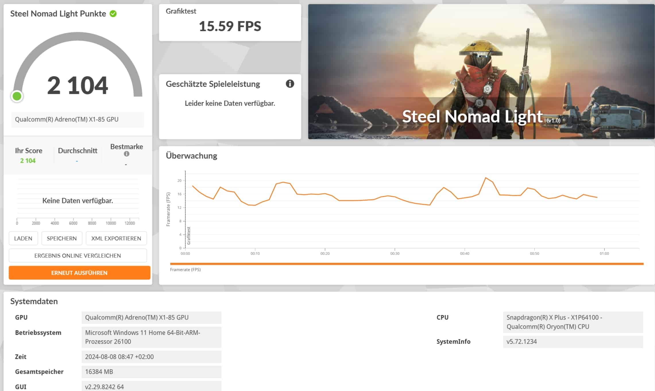 Hinsichtlich der Grafikleistung wird jedoch schnell klar: Gaming-tauglich ist das Inspiron 14 Plus – oder der Snapdragon X Plus im Allgemeinen eher kaum. Zumindest, wenn eure Asprüche höher ausfallen, als einige simple Games in niedrigen Auflösungen und Details.