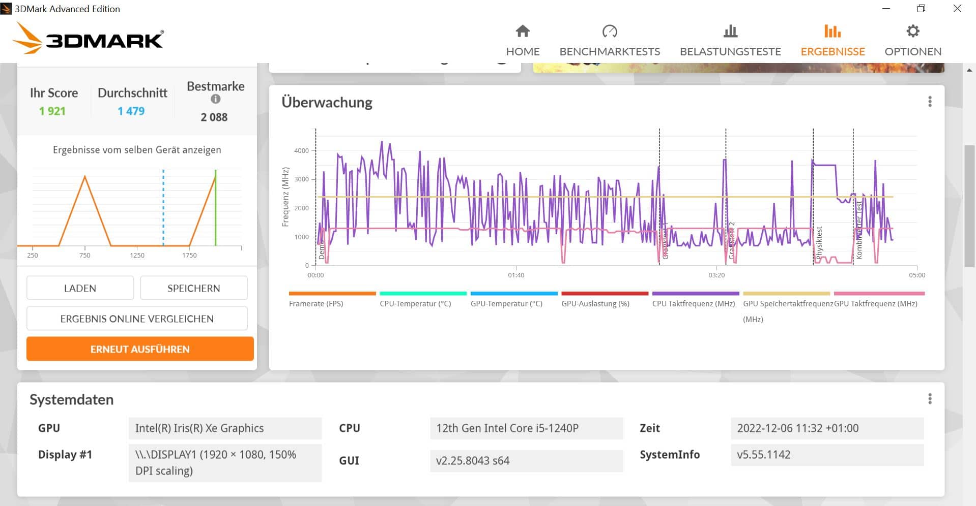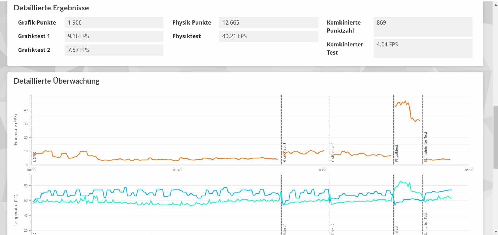Natürlich handelt es sich hier um ein Business-Notebook. Jedoch wollte ich wissen, welche FPS im WildlifeExtreme sowie FireStrikeExtreme erreicht werden können.