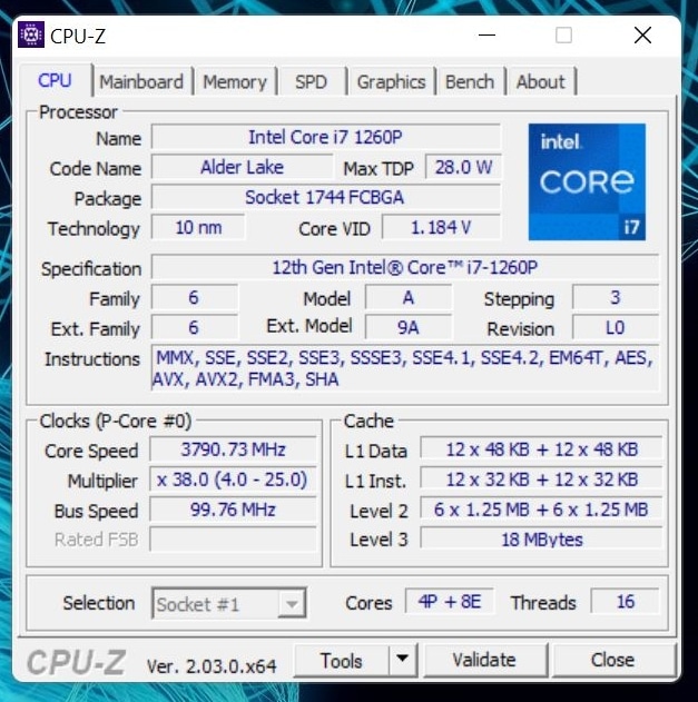 | Prozessor | Intel Core i7-1260P (12 Kerne, 16 Threads, 2.1 – 4.7 GHz) |