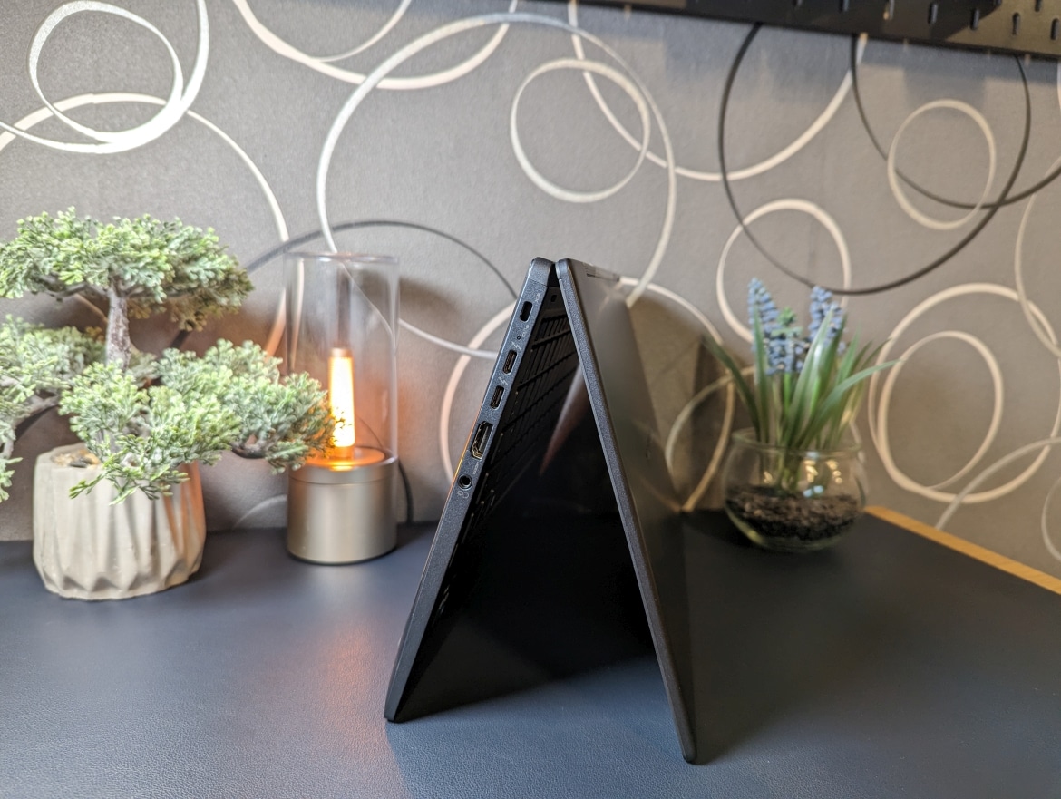 Ihm stehen 16 Gigabyte an schnellem LPDDR5-Arbeitsspeicher mit 5.200 MHz zur Seite. Optional bietet der Hersteller das Convertible aber auch mit anderen CPUs, weniger oder gar mehr Arbeitsspeicher an. Hinzu gesellt sich eine 512 GB große PCIe 4.0-SSD. Kurz gesagt: Die Ausstattung lässt keine Wünsche offen.