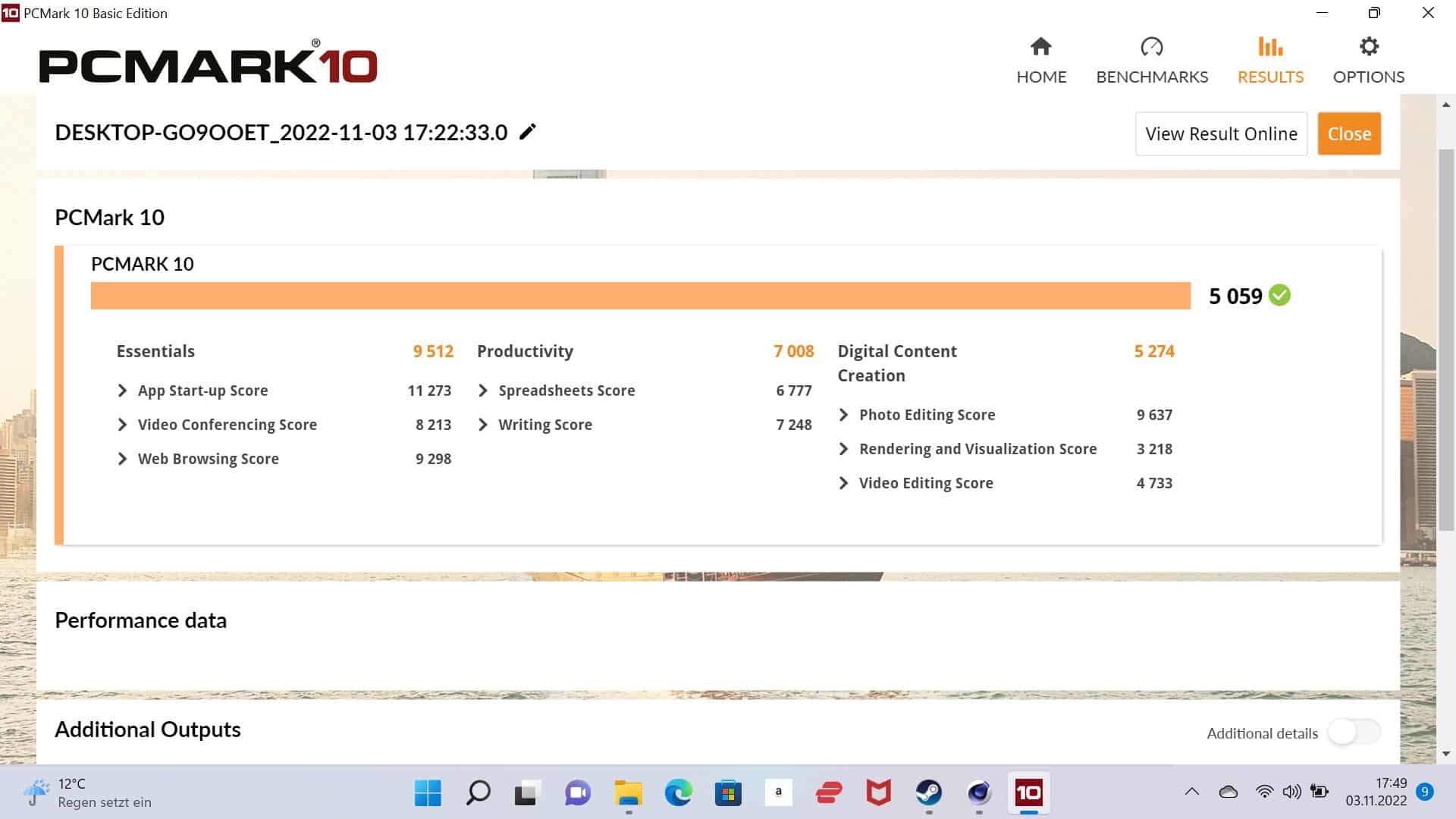 | PCMark 10 Gesamtwert | 5.059 Punkte |