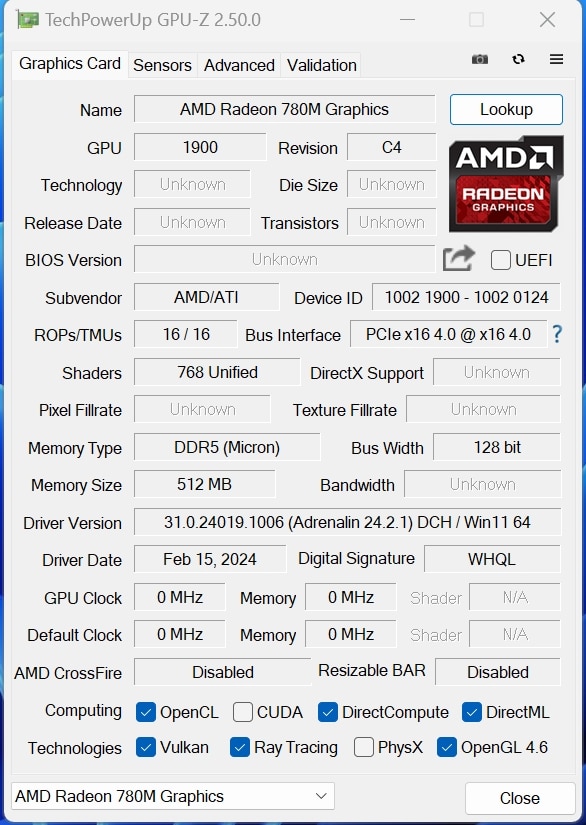 | Grafikleistung | AMD Radeon 780M |