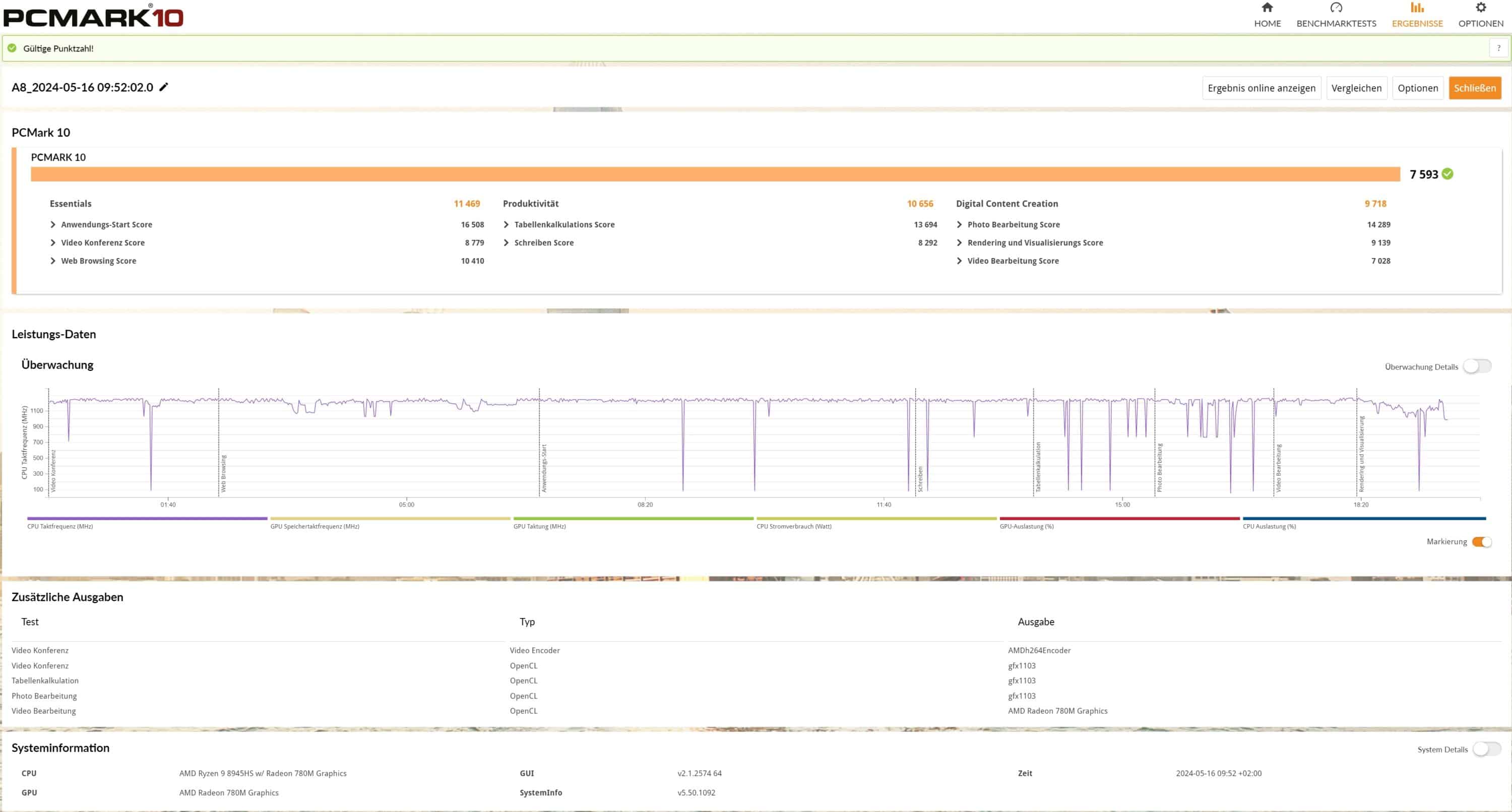 | PCMark 10 Gesamtwert | 7.593 Pkt. |