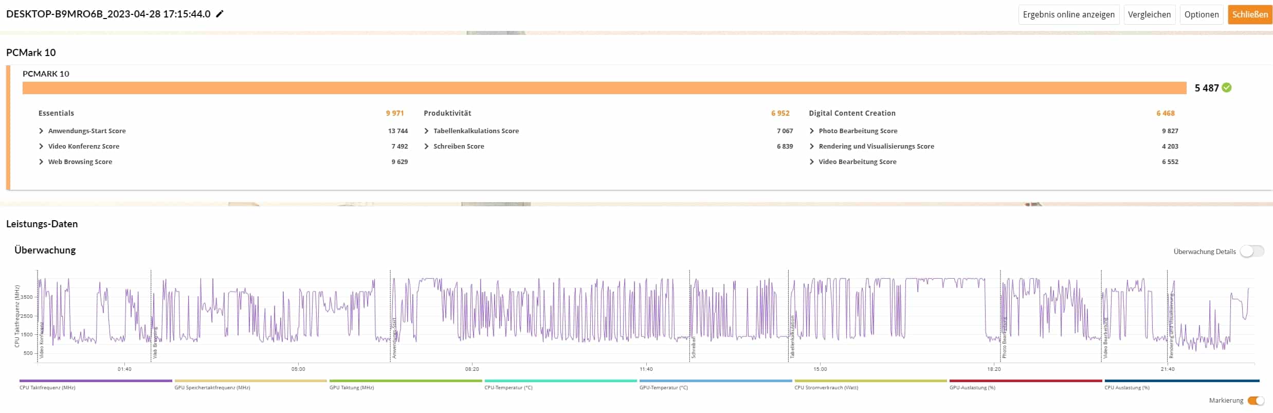 | PCMark 10 Gesamtwert | 5.487 Pkt. |