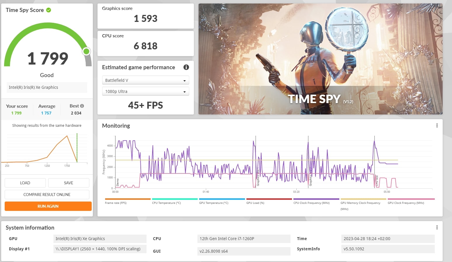 | Prozessor | Intel Core i7-1260P (12 Kerne, 16 Threads, 2.1 – 4.7 GHz) |