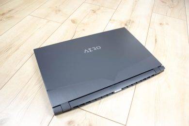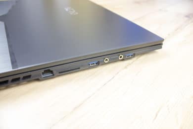 Wie schon beim Aorus 15G wird auch hier ein IPS-Panel mit X-Rite-Pantone-Zertifizierung eingesetzt. Das 17-Zoll-Display hat dabei sogar eine UHD-Auflösung (3840×2160) bei einem wirklich schmalen Displayrand. Auch bei den Anschlüssen spart Gigabyte nicht. Drei USB-3.2- sowie einen Thunderbolt-3-Port hat das Notebook mit an Bord. Zum Anschluss für weitere Monitore sind einmal HDMI 2.0 und einmal mini DP 1.4 dabei. Dass sich das Aero 17 nicht nur zum Zocken eignet, sieht man auch an dem SD-Kartenleser, welcher für Gaming-Notebooks eher unüblich ist.